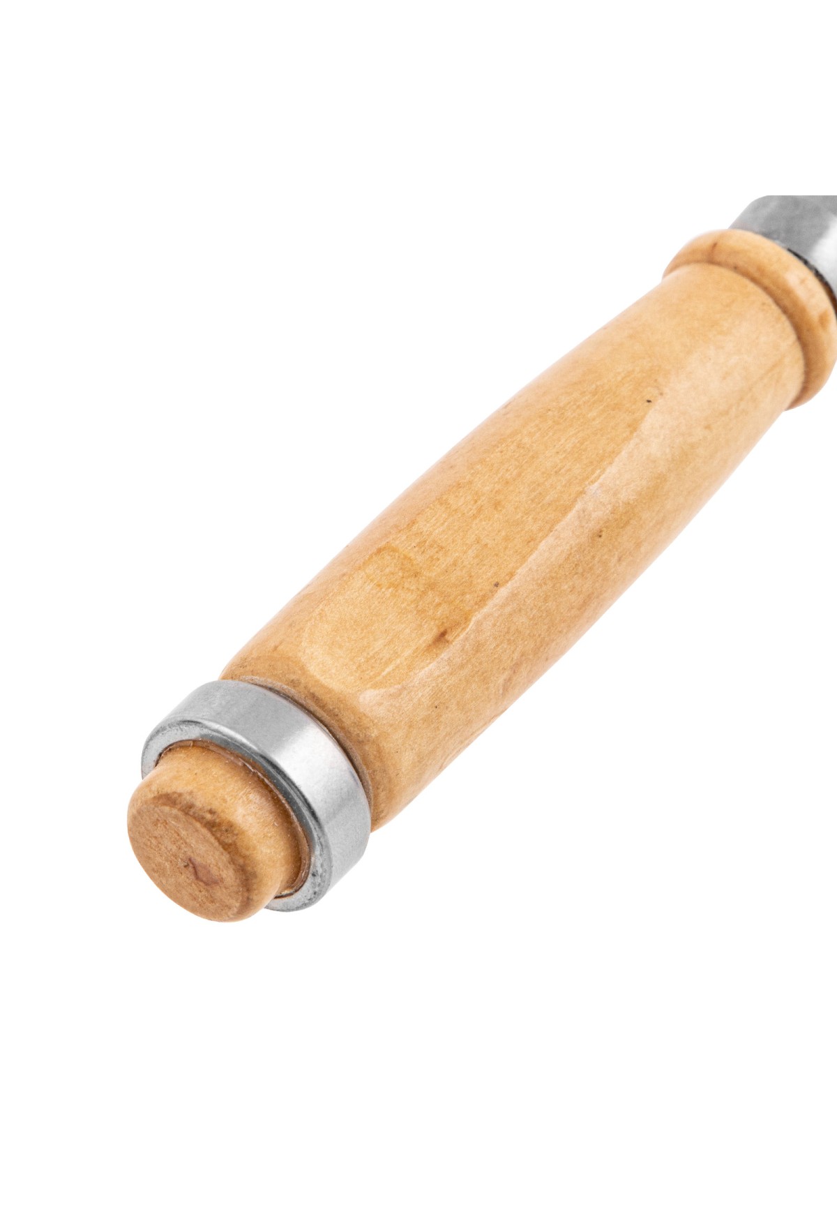 Плоское долото-стамеска 6 мм с деревянной рукояткой предназначено для столярных и плотничных работ- выборка и зачистка небольших прямоугольных пазов, снятия фасок в натуральной древесине любой твердости.Полотно стамески выполнено из конструкционной стали 45 и острозаточена. Твердость инструмента на длине 0,7 рабочей части полотна составляет 45-55 HRC. Рукоятка имеет защитное лакокрасочное покрытие и оборудована металлическим кольцом с тыльной стороны, которое предотвращает раскол дерева при ударах молотком или киянкой.