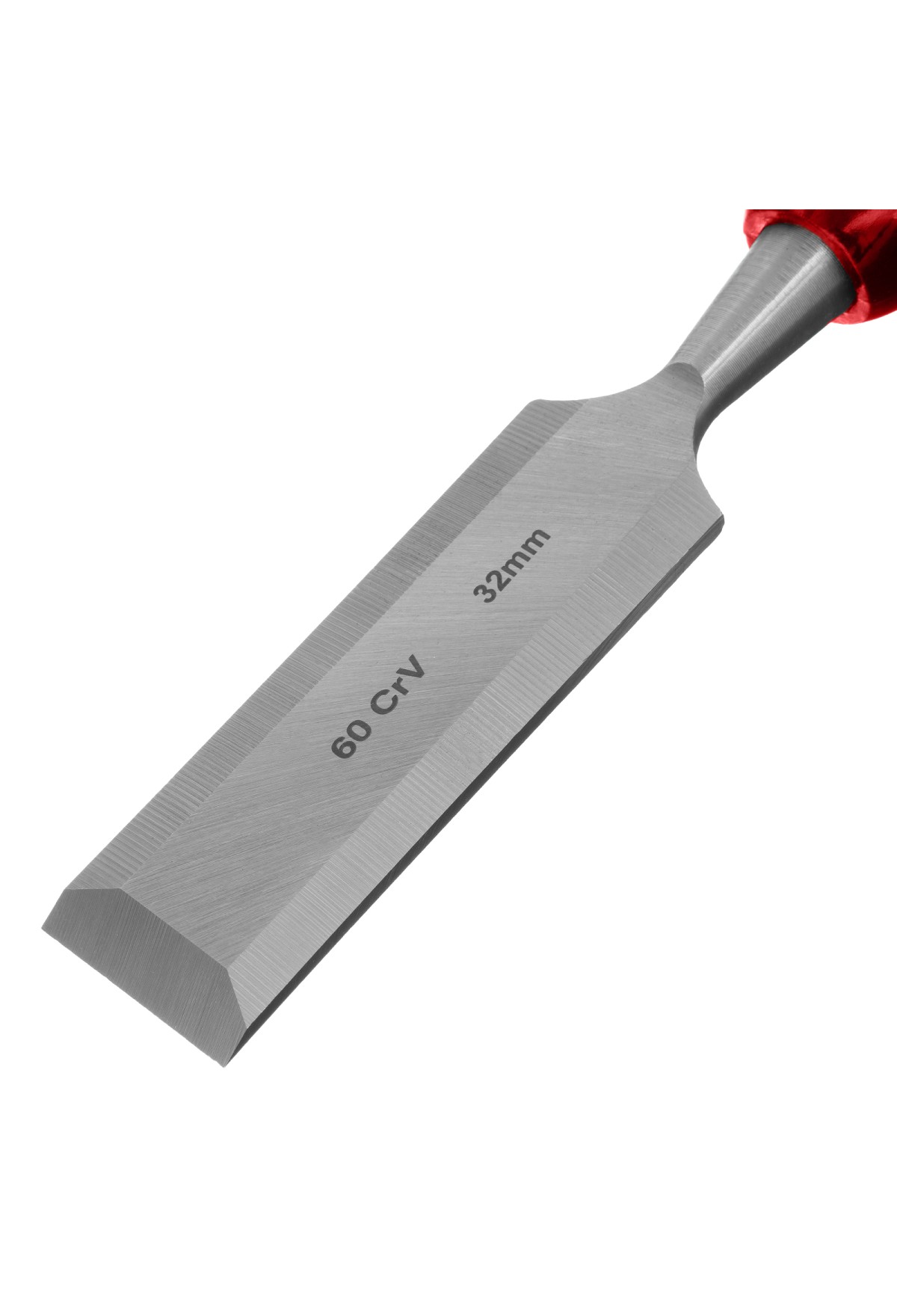 - Длительное сохранение режущих свойств — долото-стамеска обладает твердостью 65 HRC (0,7 длины рабочей части полотна), острое, как бритва, лезвие обработано на заводе под углом 20-35°, повторная заточка потребуется минимум через 6 месяцев.
