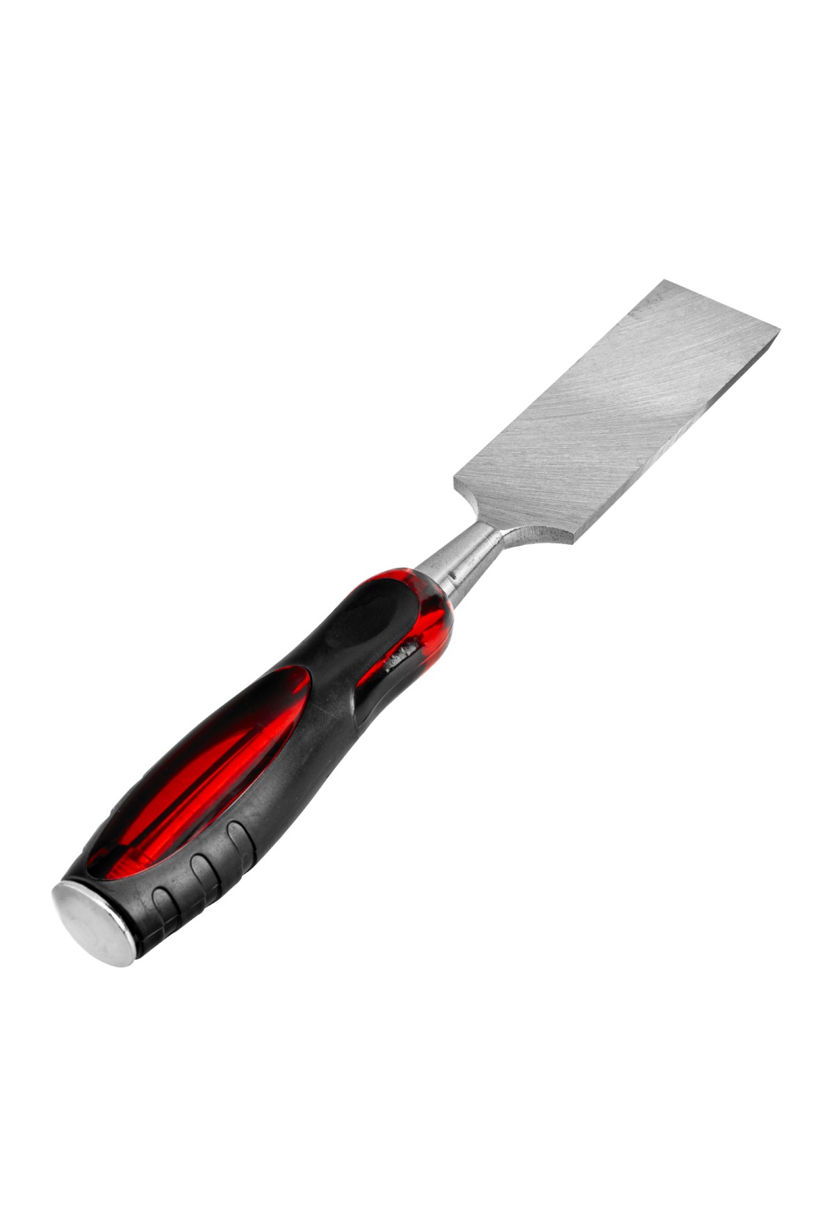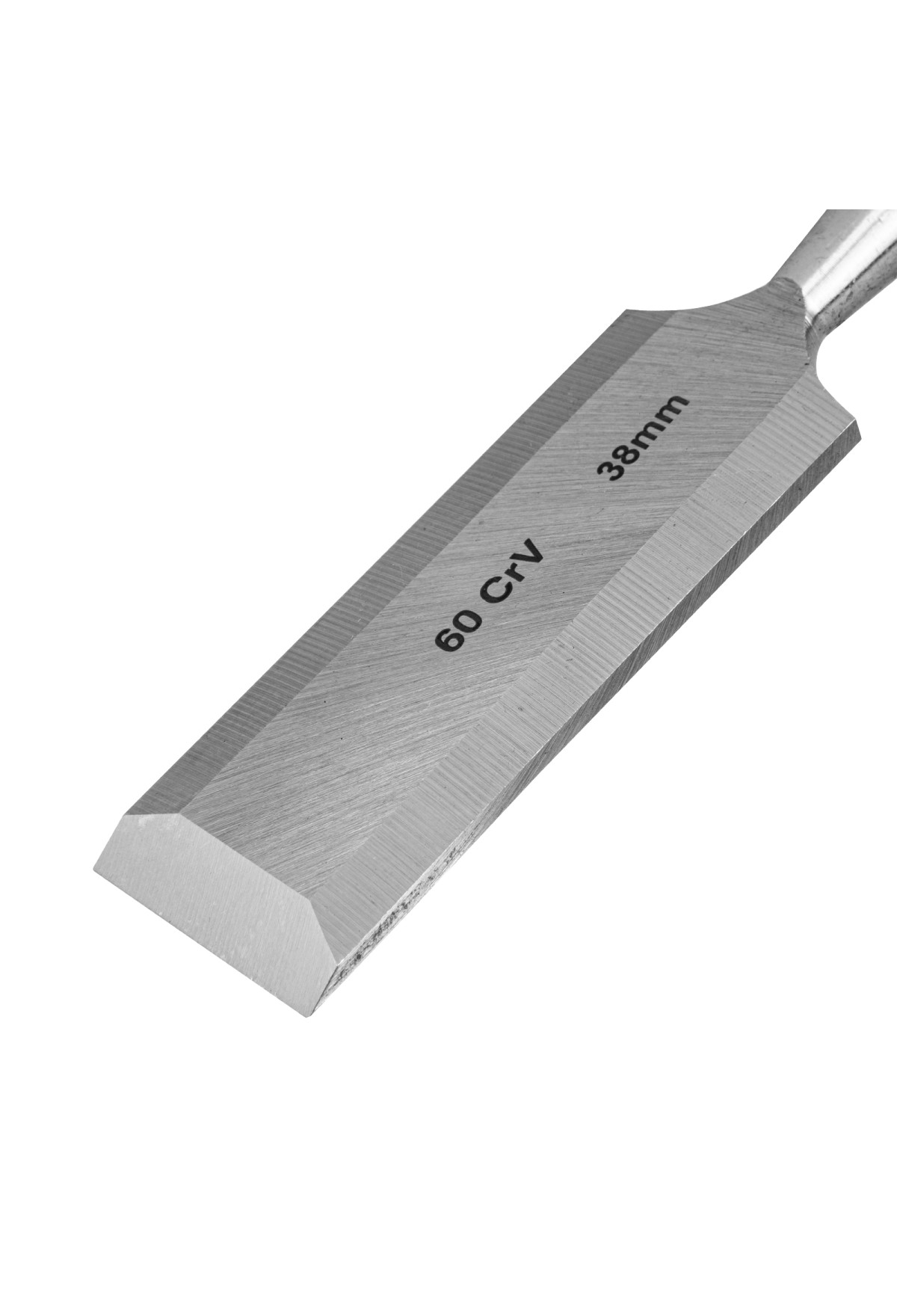 - Длительное сохранение режущих свойств — долото-стамеска обладает твердостью 65 HRC (0,7 длины рабочей части полотна), острое, как бритва, лезвие обработано на заводе под углом 20-35°, повторная заточка потребуется минимум через 6 месяцев.