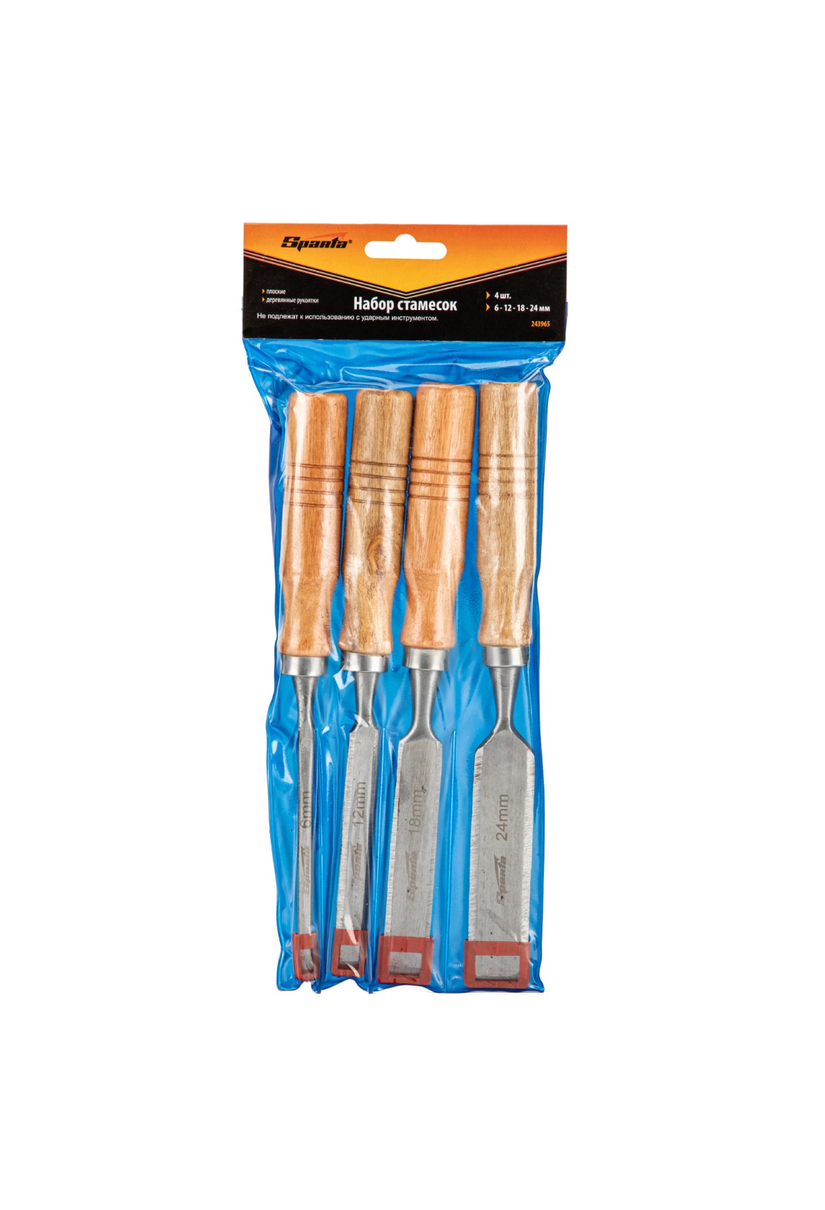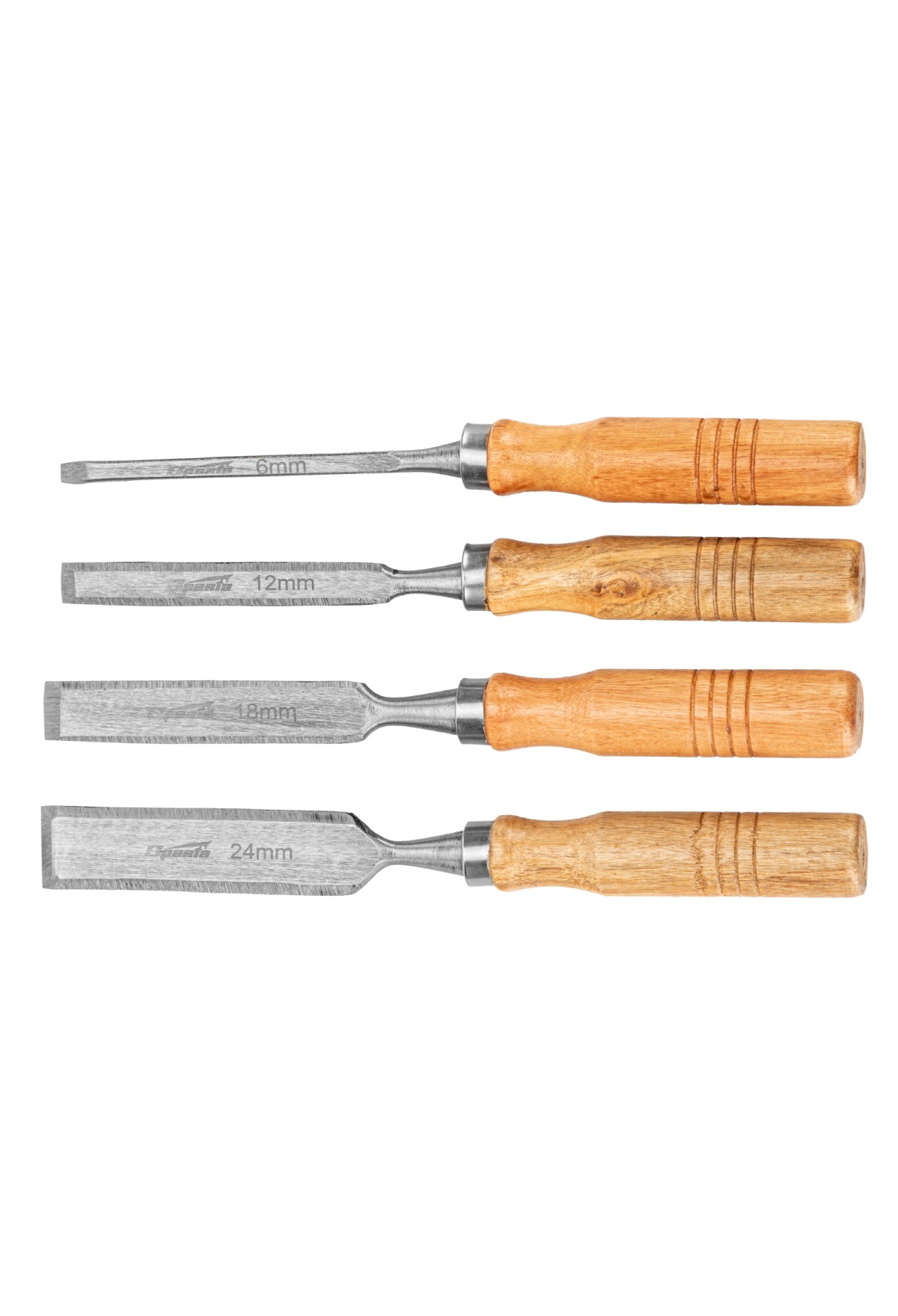 Набор стамесок, 6-12-18-24 мм, плоские, деревянные рукоятки Sparta