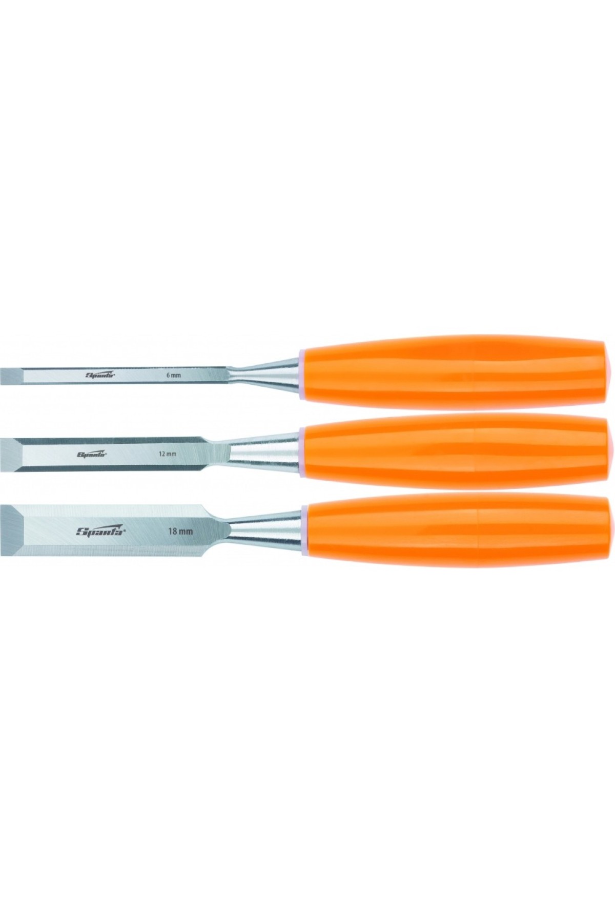Набор Sparta 24411 из 3 плоских стамесок с полотнами шириной 6, 12 и 18 мм предназначен для ручной обработки дерева — зачистки кромок и гнезд, снятия фасок, нанесения декоративной резьбы. Угол заточки составляет 20-35° — режущие кромки снимают тонкую стружку, что обеспечивает точность и аккуратность работ. Набор используется в столярном и плотницком деле, пригодится и в домашней мастерской.