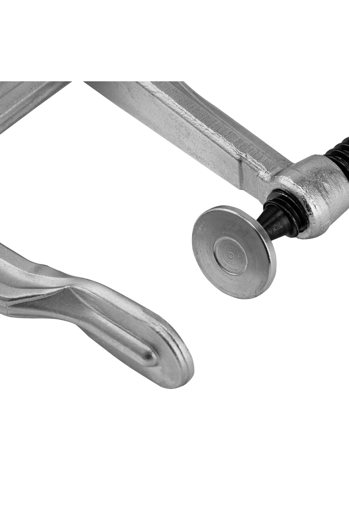 - Хромированное покрытие надежно защищает струбцину от коррозии.