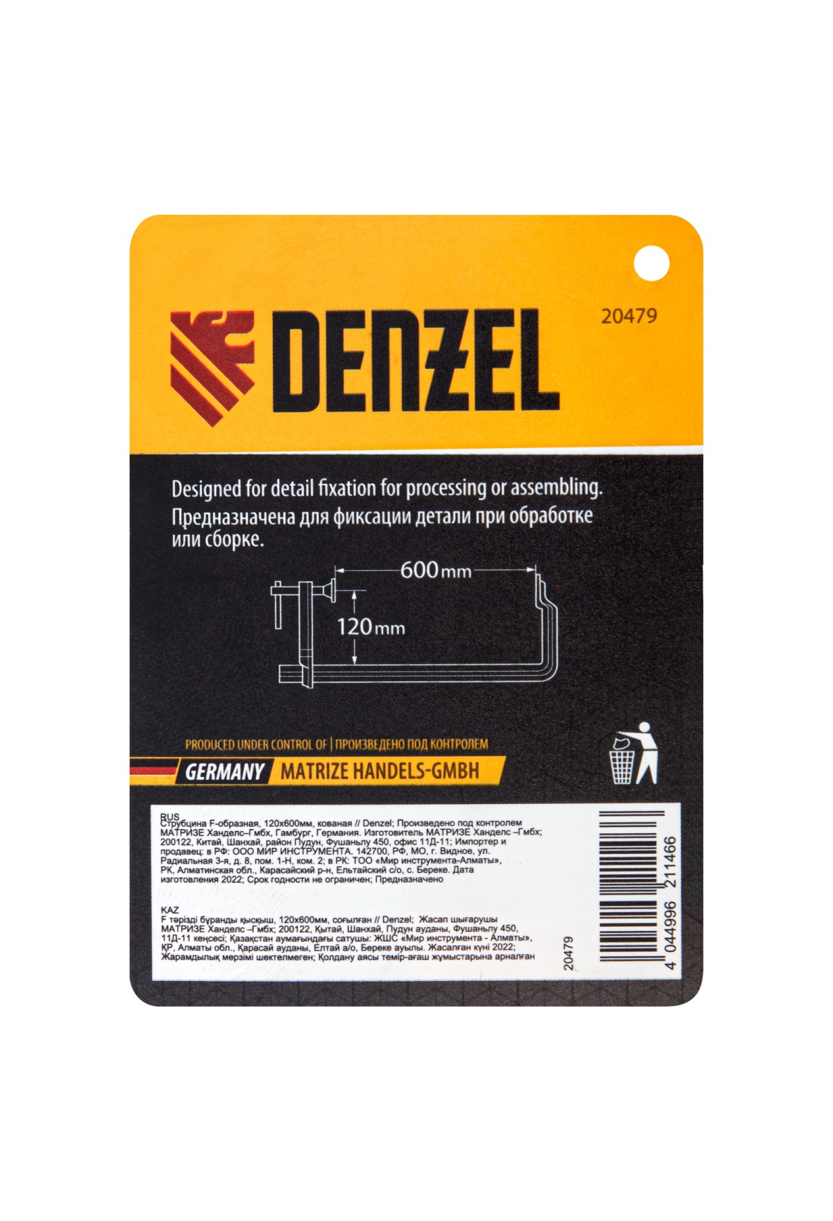 Технические характеристики Струбцина F-образная, 120x600мм, кованая // Denzel