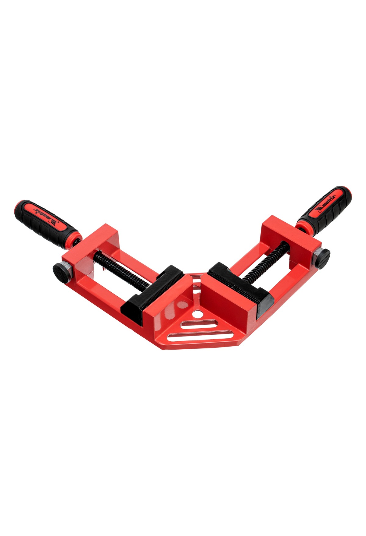 Угловая быстрозажимная струбцина Matrix 20322 с шириной зажима 65 х 65 мм, с двухкомпонентными обрезиненными рукоятками, предназначена для быстрой и надежной фиксации заготовок перпендикулярно друг другу. Рычажно-осевой механизм не требует особых усилий от пользователя. Инструмент позволяет точно выдерживать угол в 90°, обеспечивая высокое качество работ. Струбцину используют для сборки мебели и других конструкций.