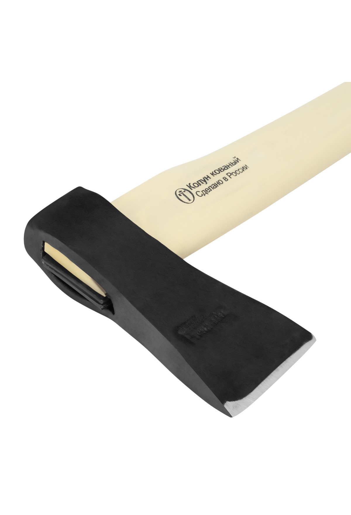 - Стойкость к воздействиям внешней среды — деревянное топорище выполнено из березы, отшлифовано, покрытой защитной шпатлевкой и пленкой.