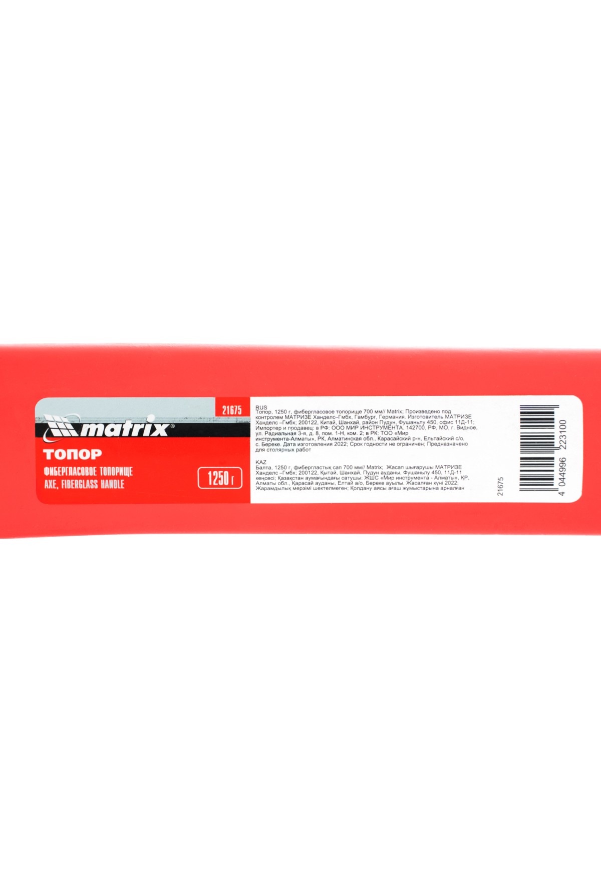 Технические характеристики Топор, 1250 г, фибергласовое топорище 700 мм Matrix