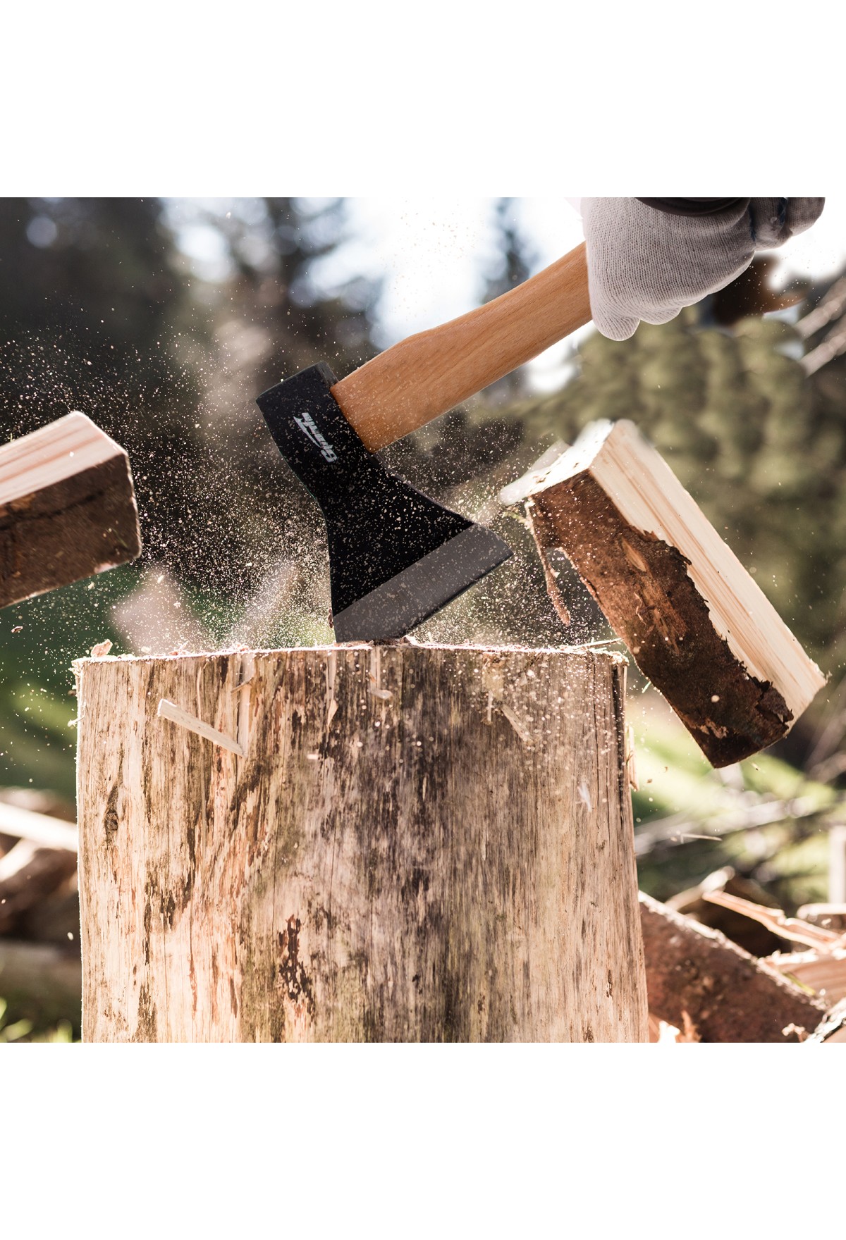 - Топор компактен за счет небольшой рукоятки длиной 360 мм, поэтому его удобно транспортировать.