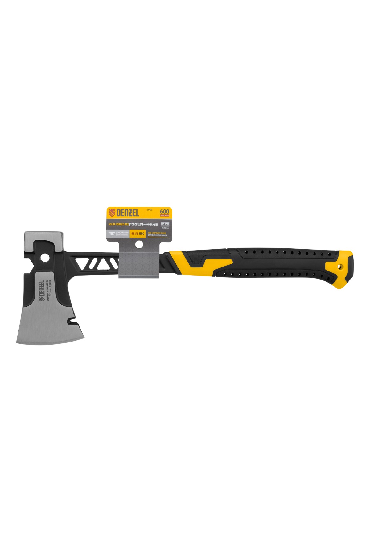Топор цельнокованый 600 г, двухкомпонентная обрезиненная рукоятка Denzel