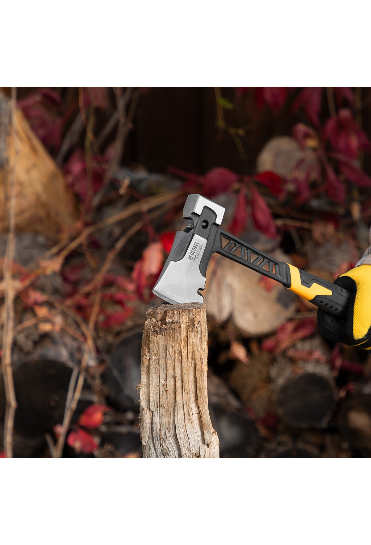 Цельнокованый топор Denzel 21499 с рабочей частью весом 600 г и двухкомпонентной обрезиненной рукояткой предназначен для рубки бревен и веток, колки дров, обработки древесины и т.д. Будет полезен в быту и на строительной площадке.