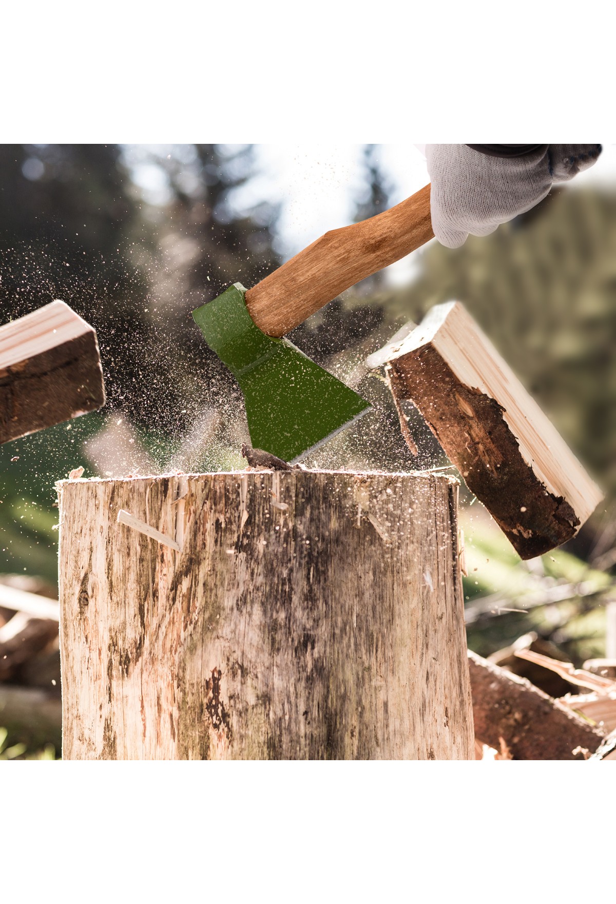- Вес с топорищем 1550 г.