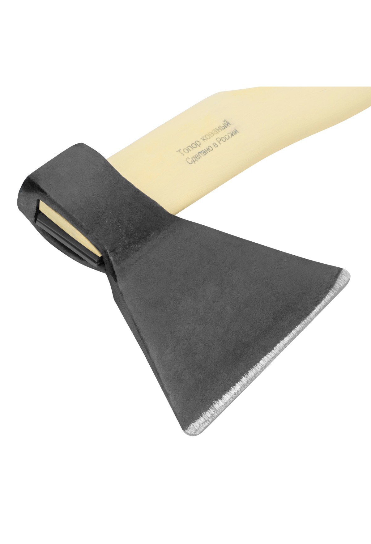 - Устойчивость к разрушению — березовое топорище отшлифовано, покрыто шпатлевкой и пленкой.