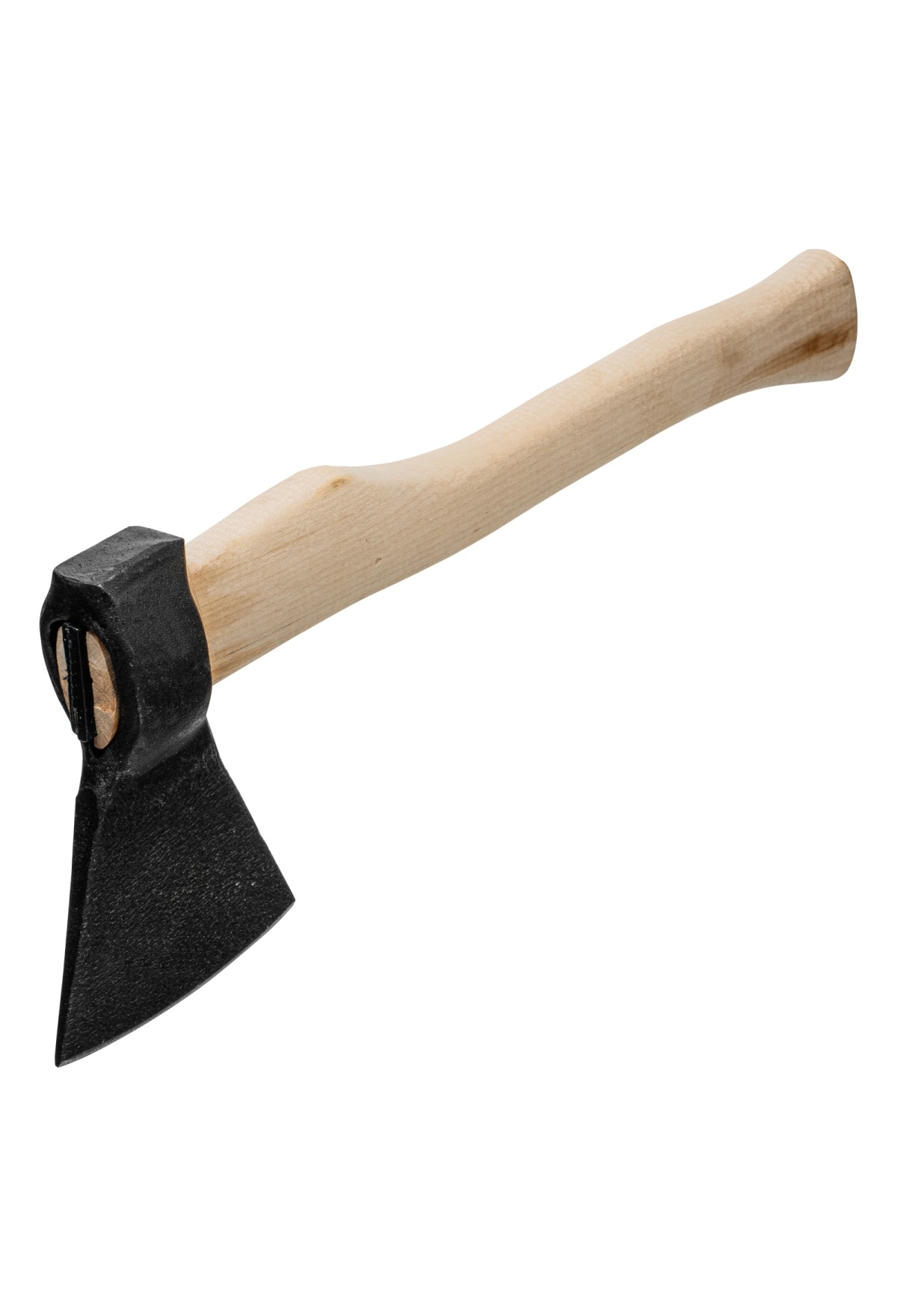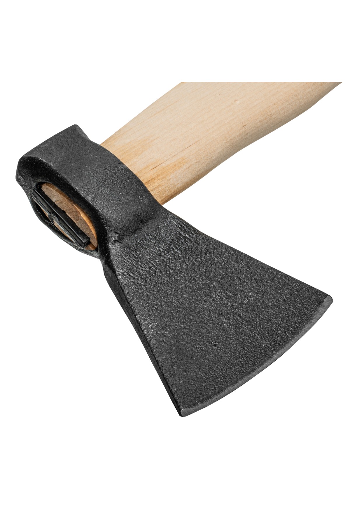 - Прочное соединение головы с топорищем — в месте всада установлен клин.
