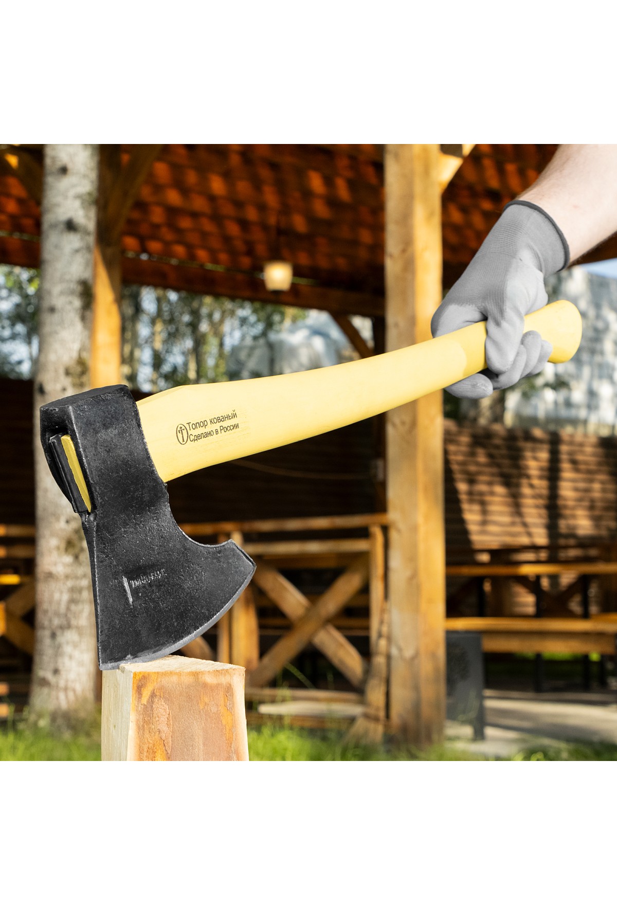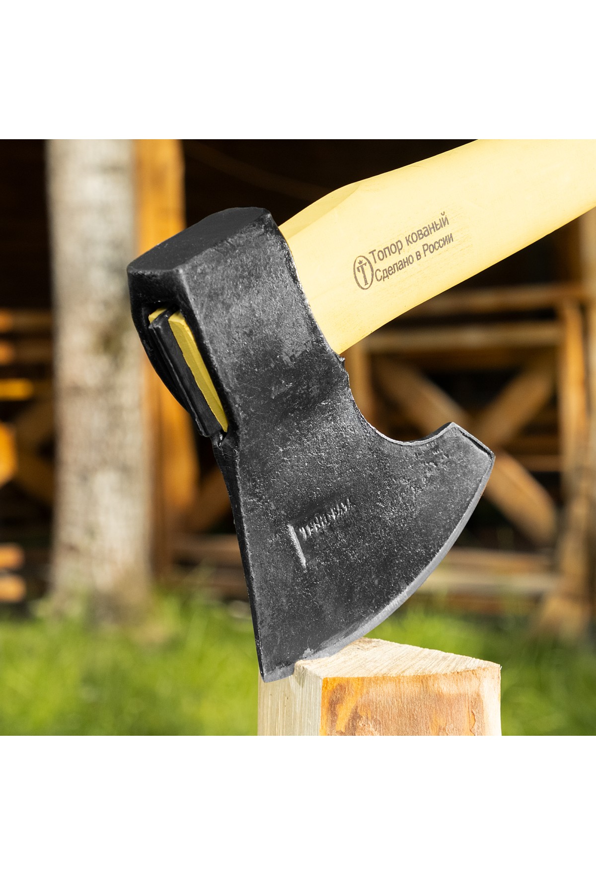 - Клин в месте всада — топорище надежно закреплено в голове.