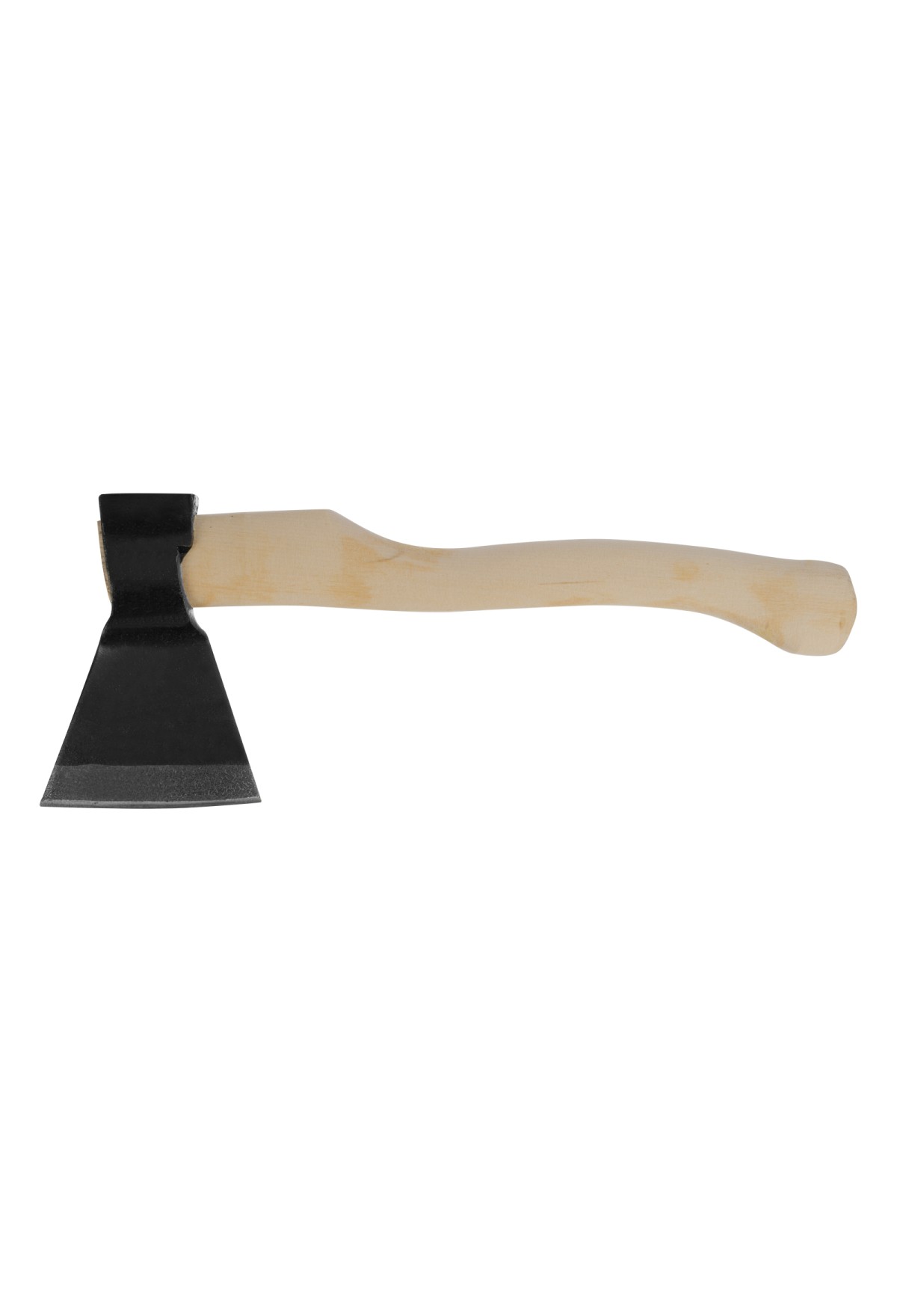 Кованый топор Б 21672 с рабочей частью весом 840 г и деревянным топорищем длиной 400 мм, весит в сборе 1070 г и рассчитан на бытовое использование. Инструмент с небольшим прямым лезвием позволяет рубить и тесать древесину любых пород.