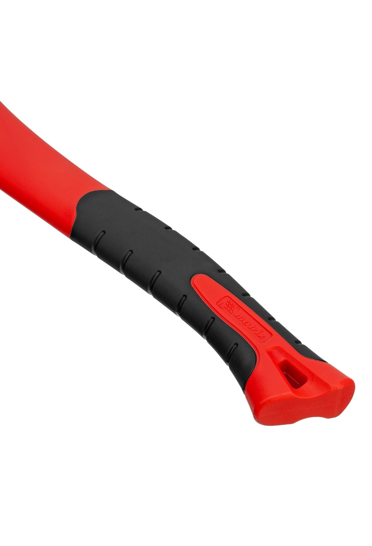 - Эргономичность — слегка изогнутое двухкомпонентное топорище с резиновыми накладками не выскальзывает из рук.