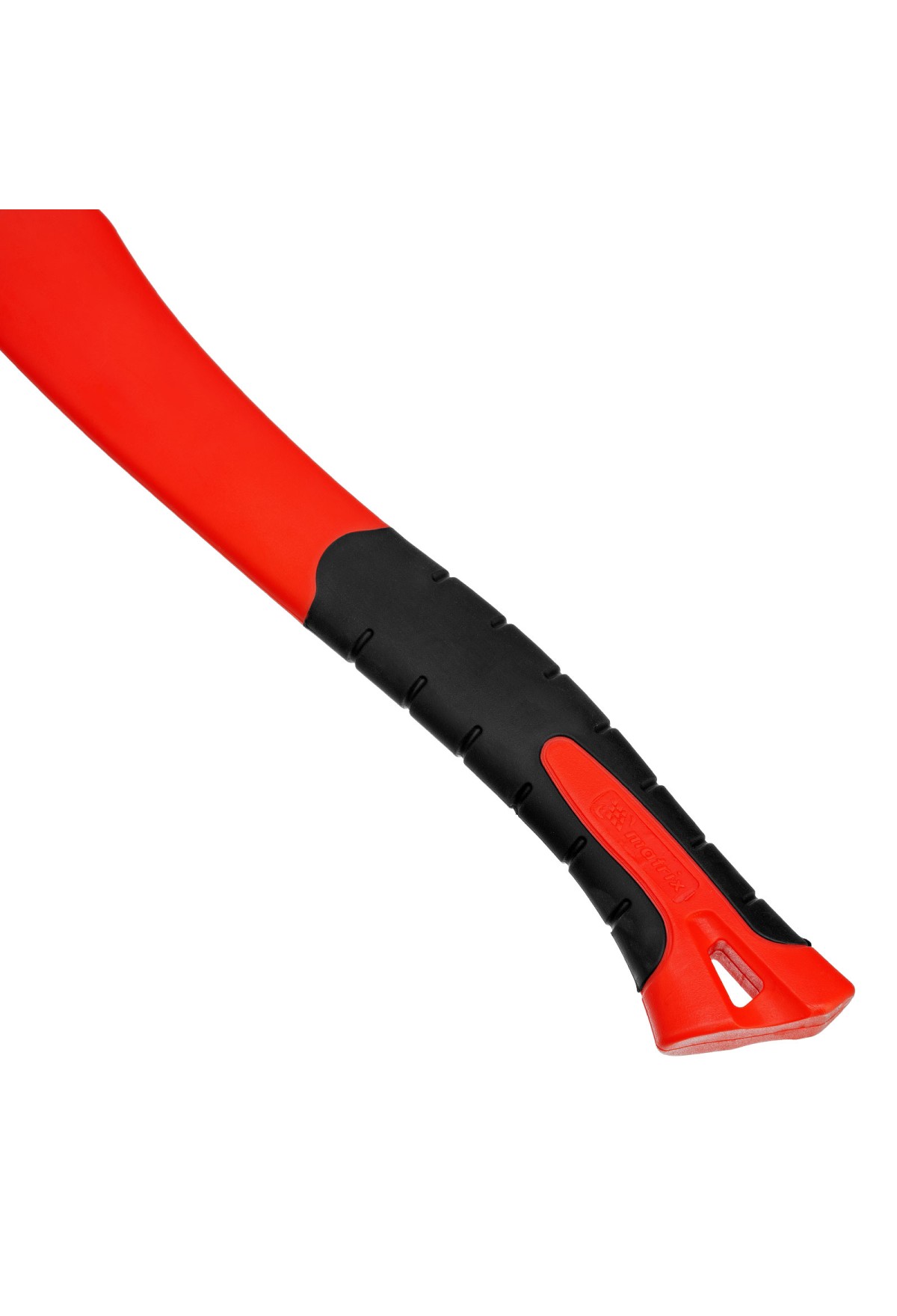 - Эргономичность — слегка изогнутое двухкомпонентное топорище с резиновыми накладками не выскальзывает из рук.