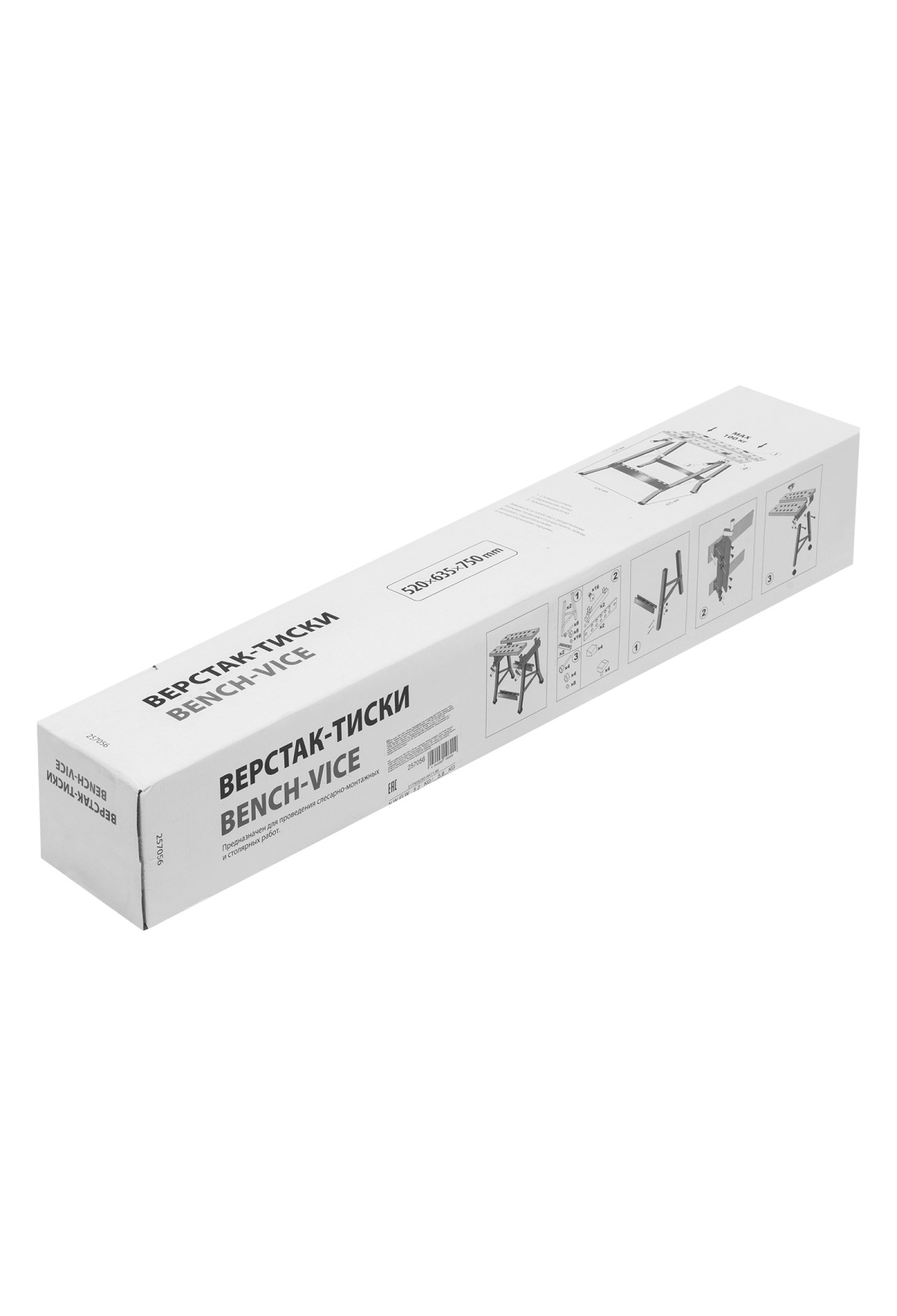 Портативный верстак-тиски 257056 размером 605 х 635 х 750 мм служит для зажимания заготовок и используется при проведении столярных и слесарных работ. Столешница представляет собой тиски из двух раздельных блоков, которые позволяют фиксировать даже детали с непараллельными гранями. Верстак пригодится в частной мастерской и дома. Установку необходимо осуществлять на ровной поверхности для максимальной устойчивости и исключения травм из-за несоблюдения техники безопасности.
