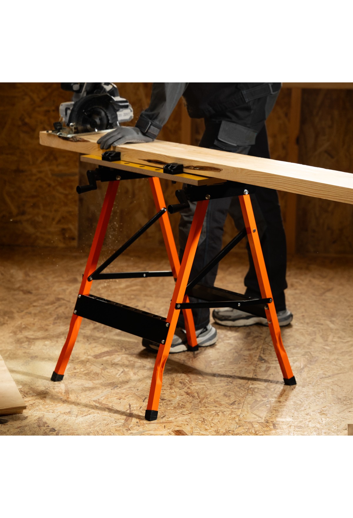 - Надежная конструкция — верстак-тиски выдерживает нагрузку до 100 кг.