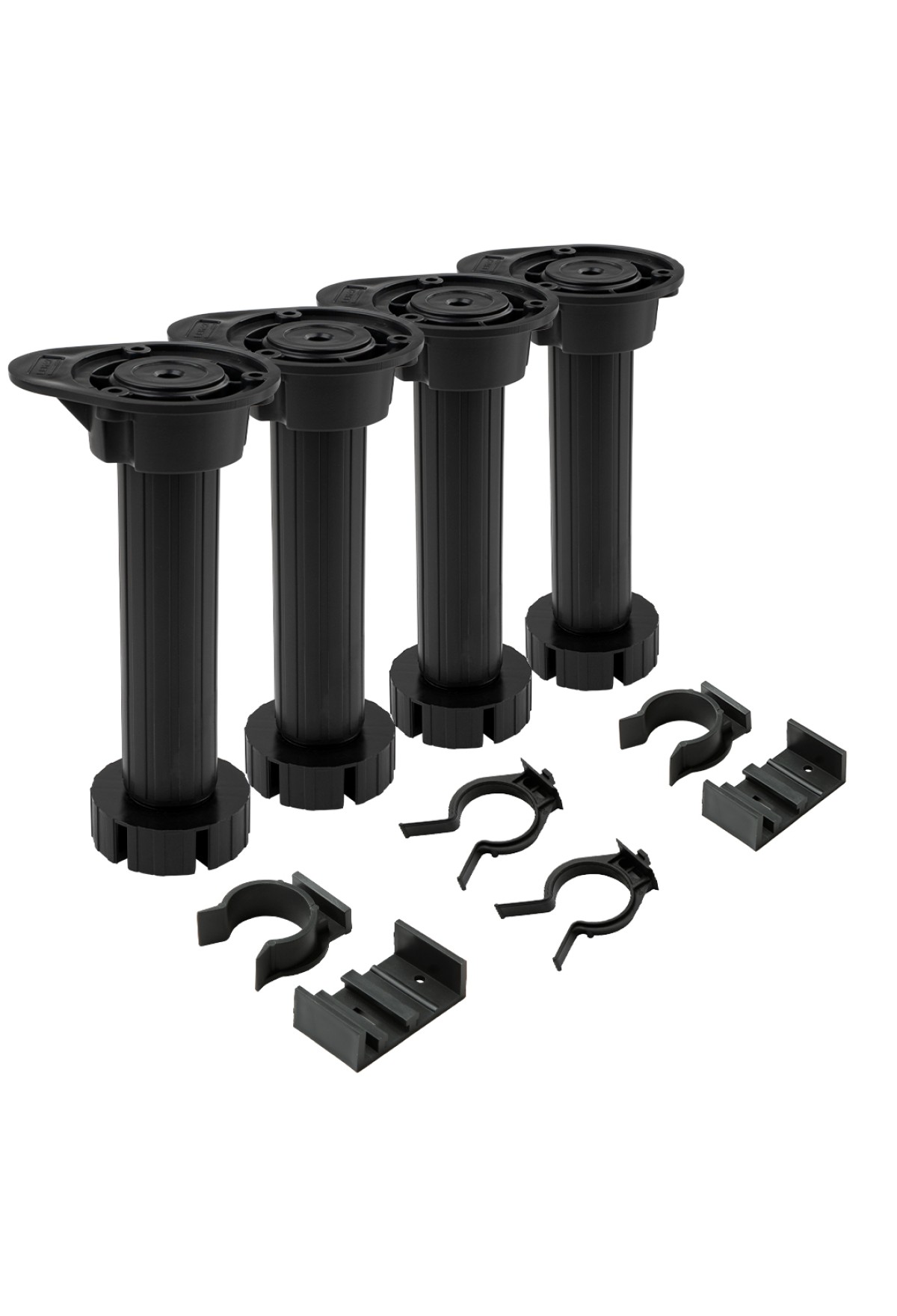 Комплект из 4 разборных, регулируемых опор 150 мм с клипсами, черный