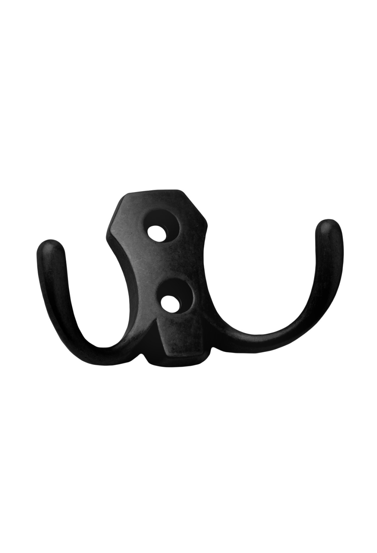 • Крючок мебельный двухрожковый, матовый черный, KR 0020 BL