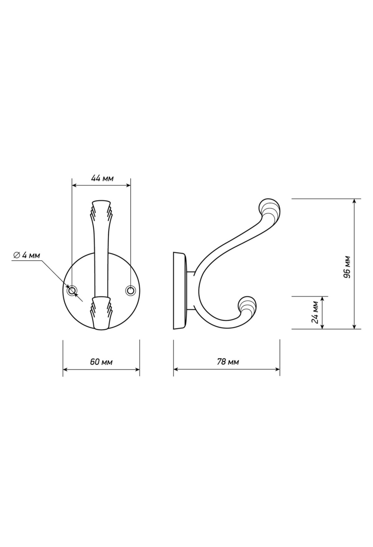 Крючок мебельный двухрожковый ВМ-1 металлический черный