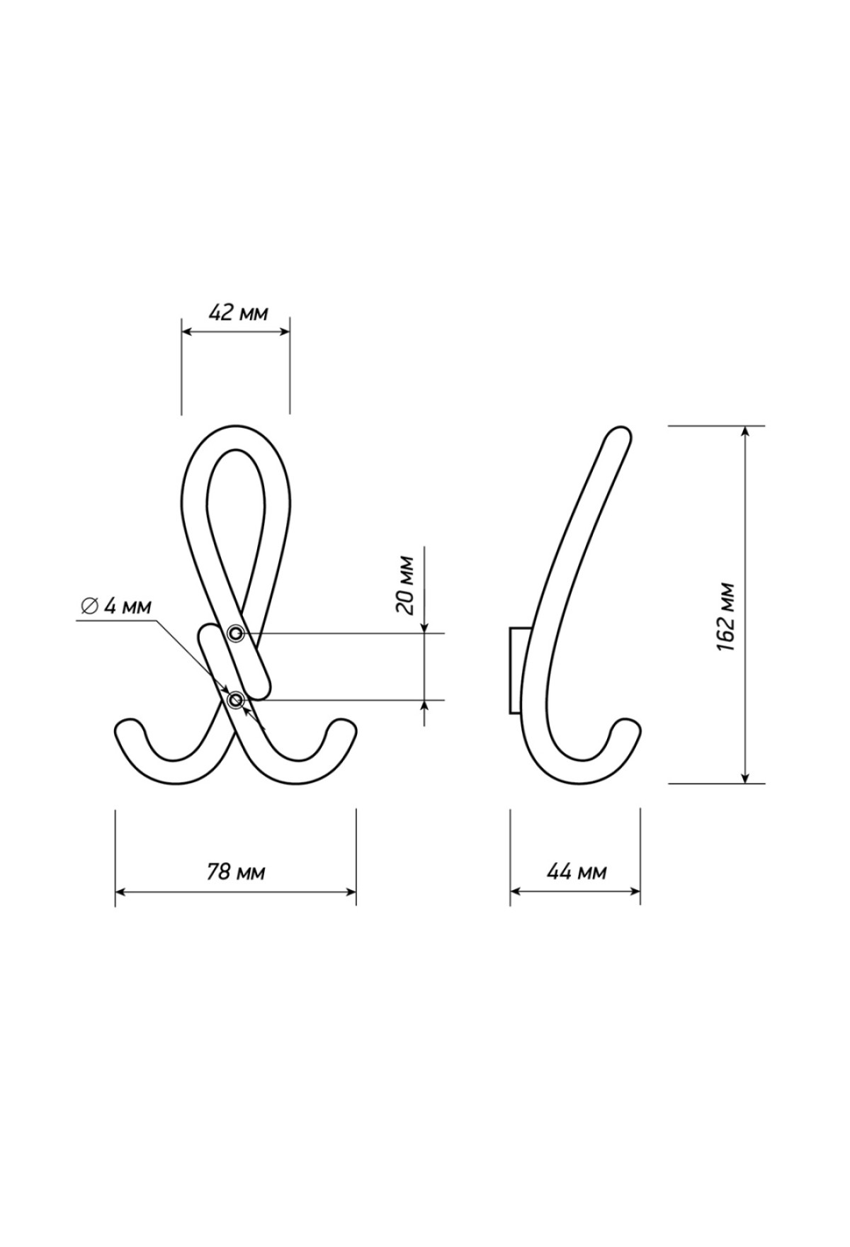 Тип крючка: Крючок двухрожковый