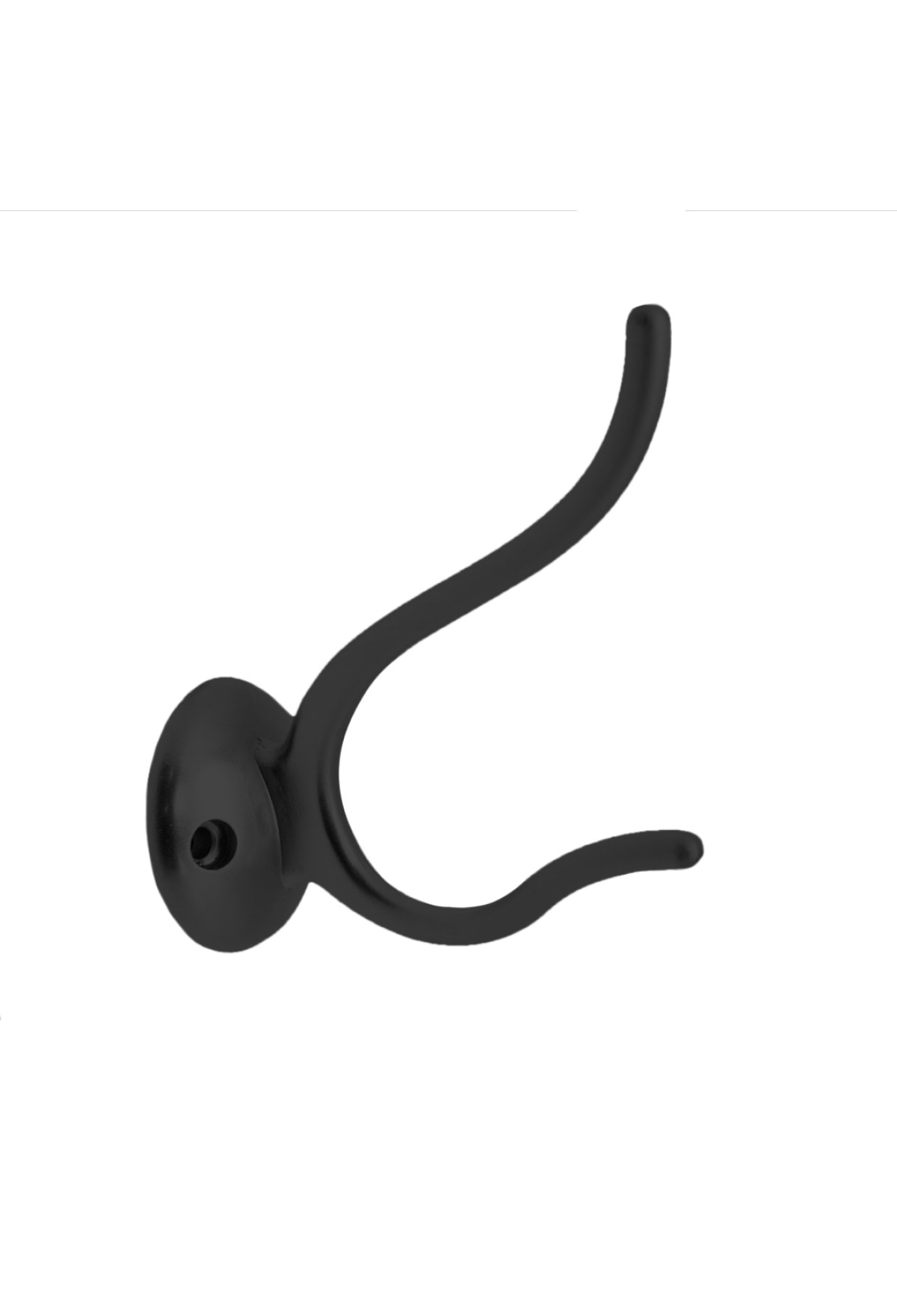 Крючок мебельный двухрожковый, матовый черный, KR 0190 BL
