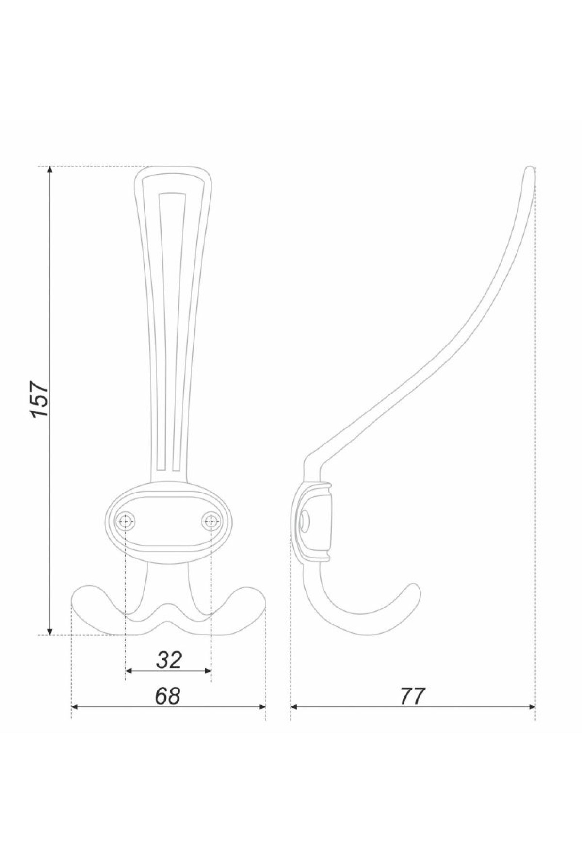 Технические характеристики Крючок мебельный трехрожковый старинная латунь (бронза) K306AB.2 Boyard