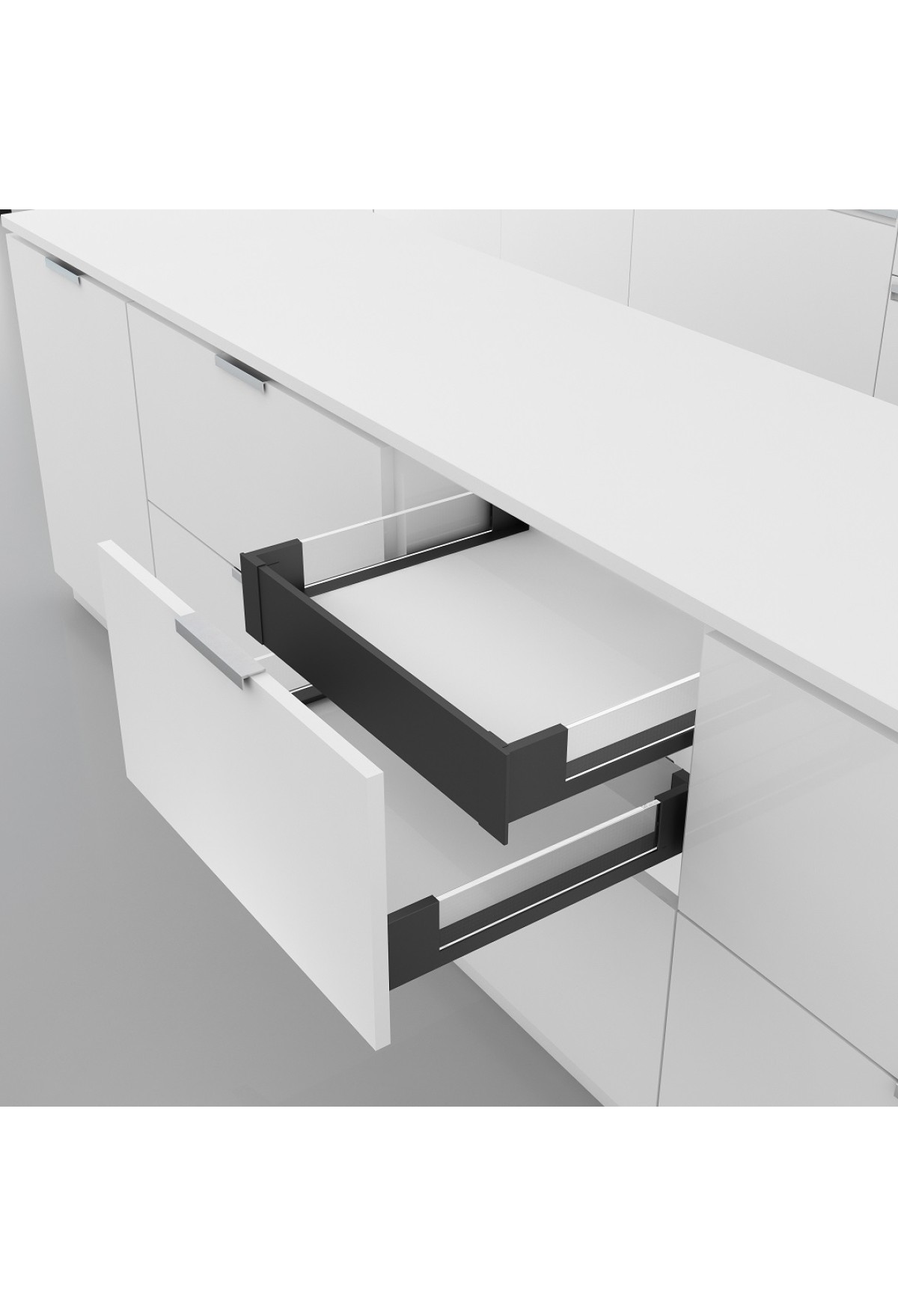 Передняя панель LBP84-GR-S предназначена для установки на внутренний выдвижной ящик с высотой боковины 84 мм в качестве замены стандартному фасаду. Панель изготовлена из алюминия, покрытого полимерно-порошковой краской. Длина изделия 1200 мм, что позволяет обрезать его под необходимую ширину ящика. Панель устанавливается на боковины при помощи держателей LBH84-GR-S, которые приобретаются отдельно.