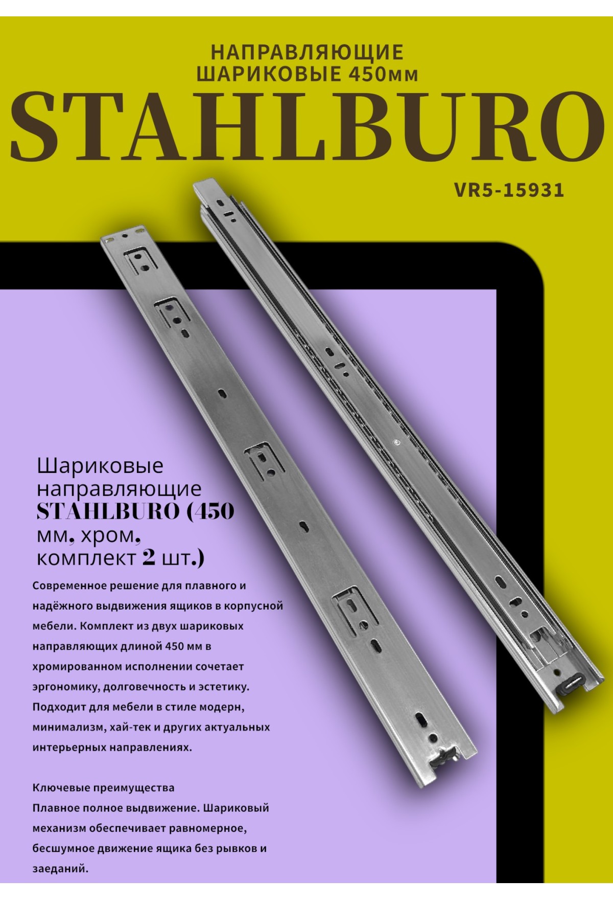 Шариковые направляющие STAHLBURO (450 мм, хром, комплект 2 шт.)