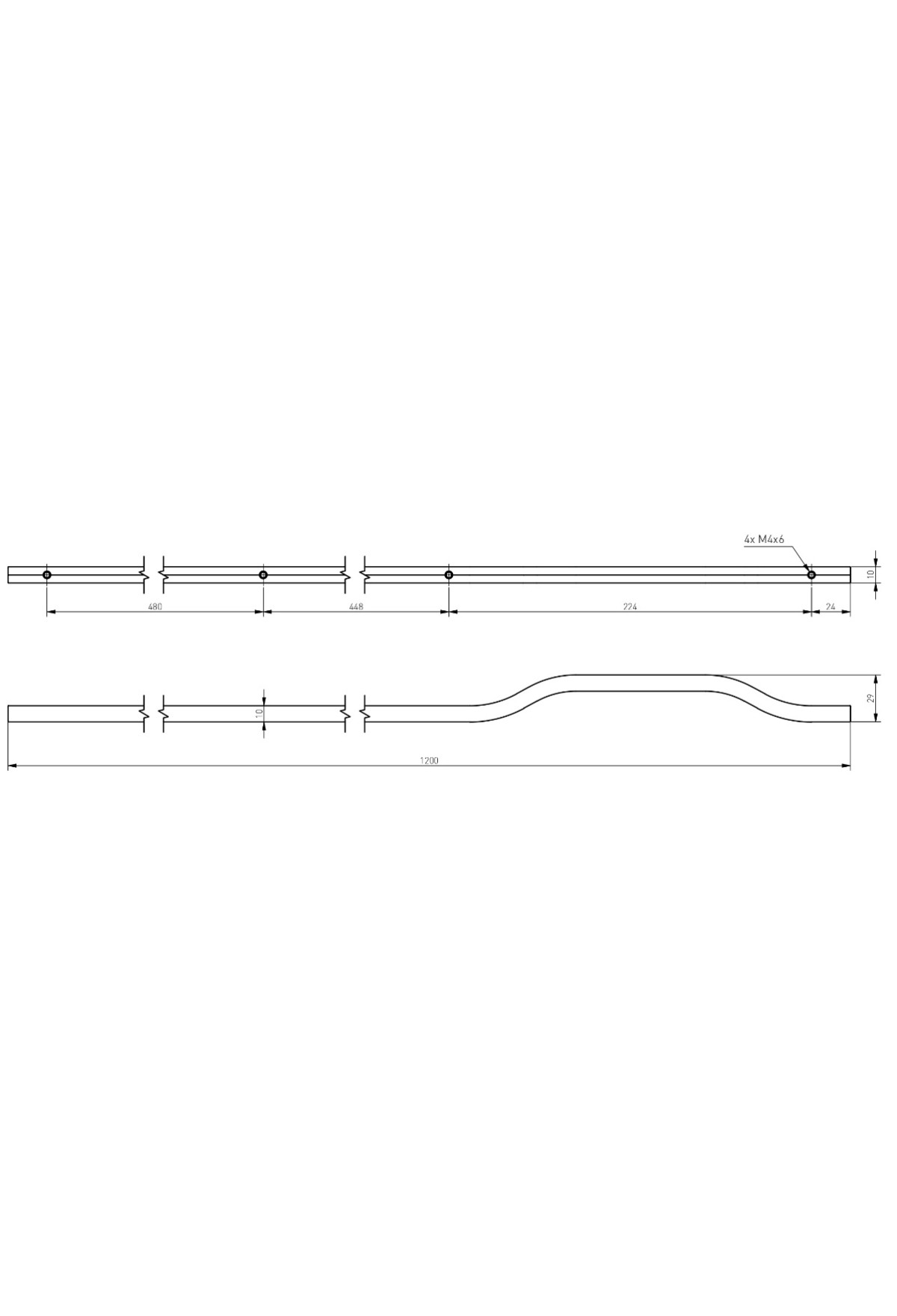Ручка крепится на 4 винта. Межцентровые расстояния на ручке L-1200: 224, 448, 480 мм.