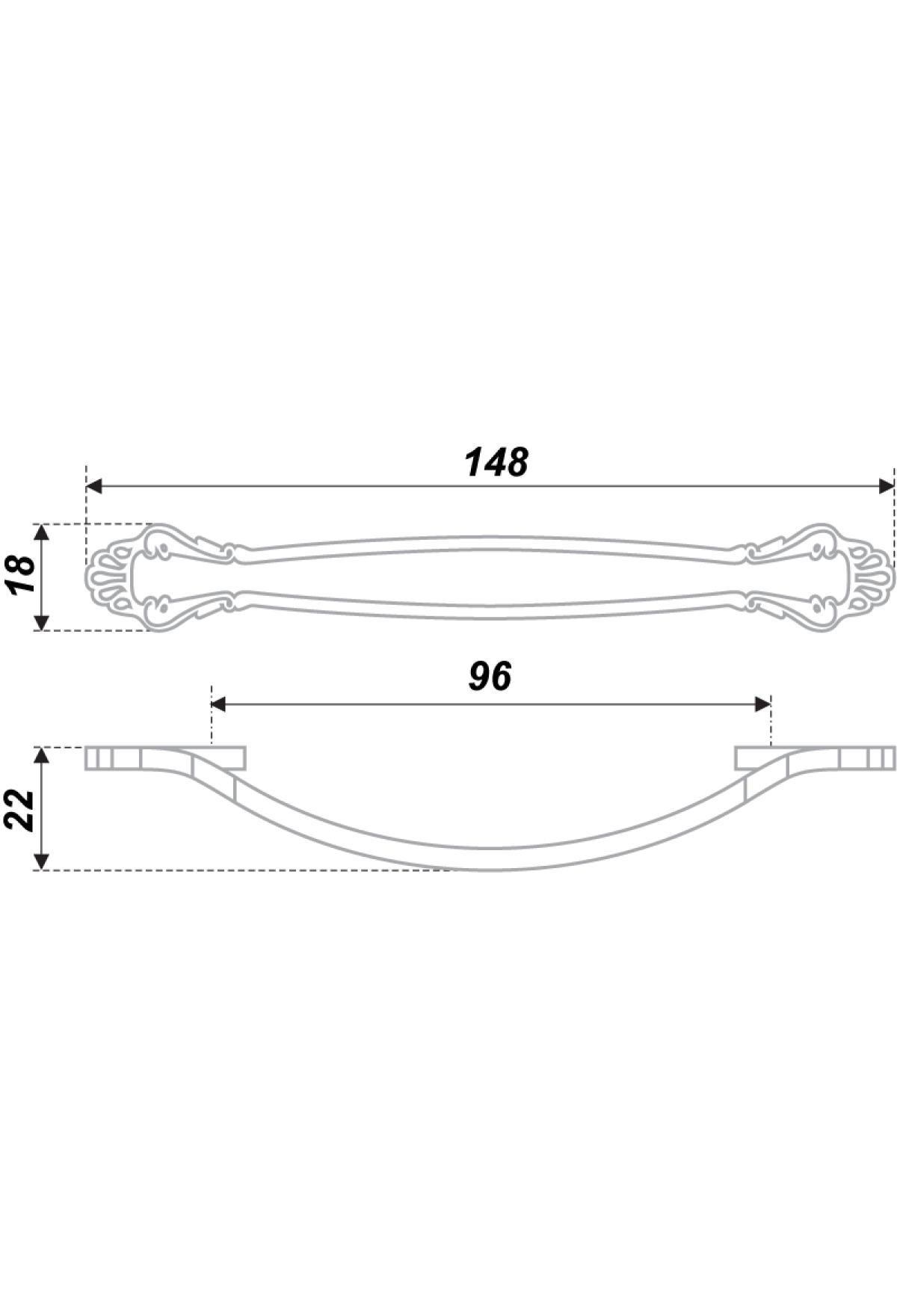 Межцентровое расстояние, мм (Ручки, крючки) 96