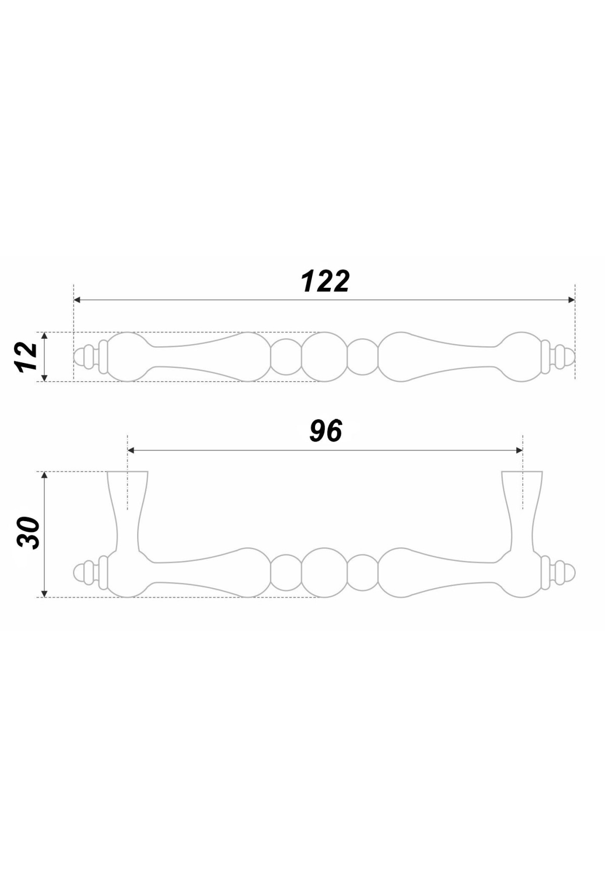 Межцентровое расстояние, мм (Ручки, крючки) 96