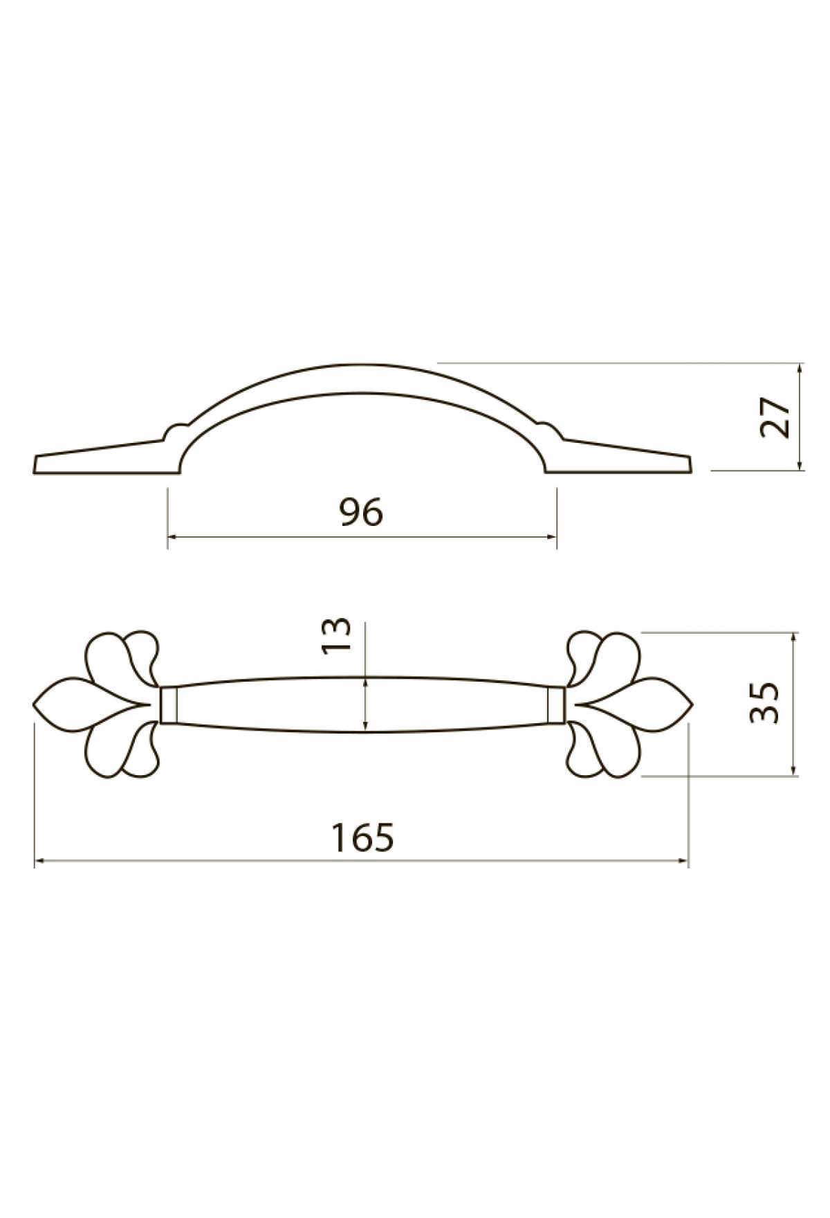 Межцентровое расстояние, мм (Ручки, крючки) 96