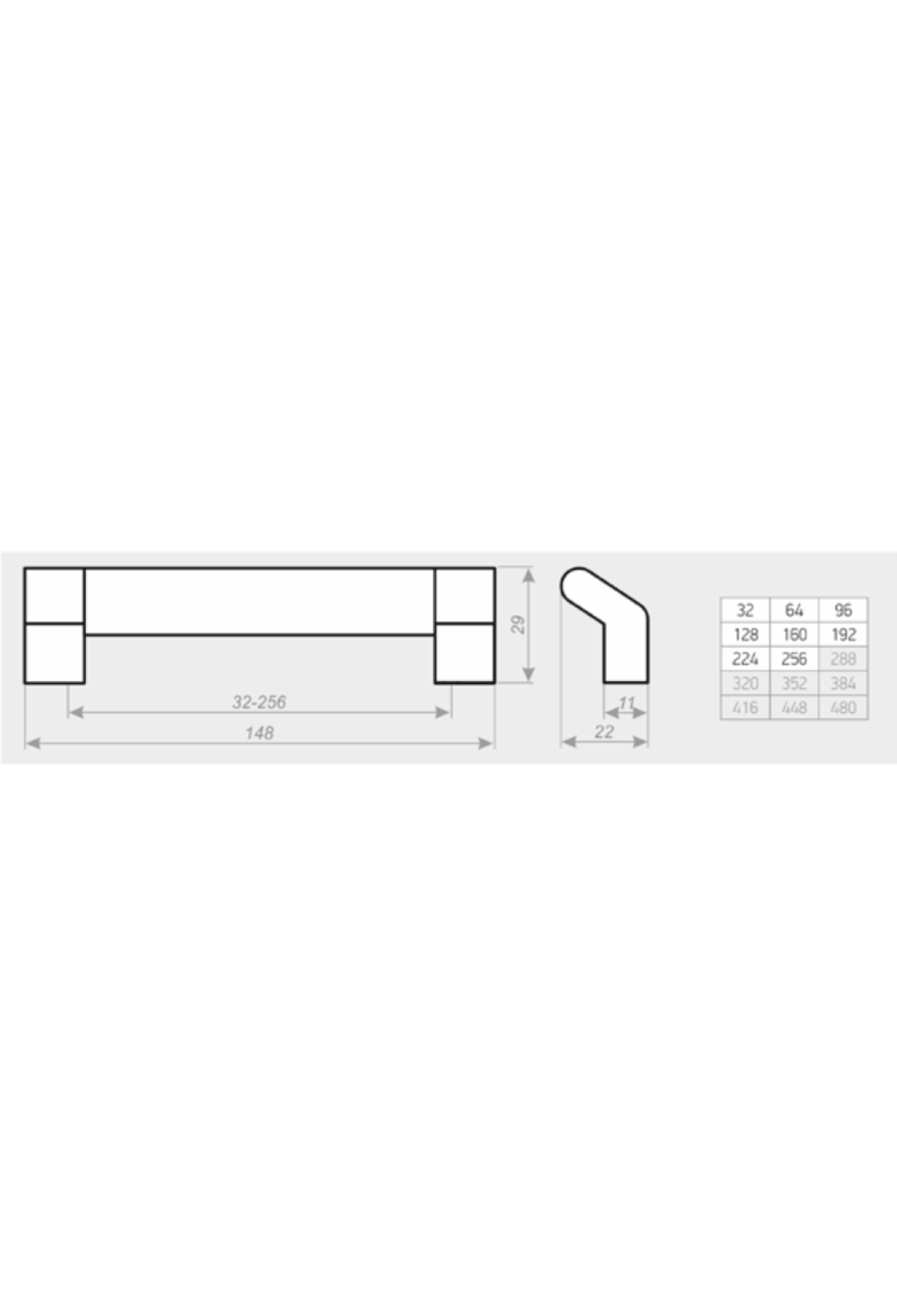 Межцентровое расстояние, мм (Ручки, крючки) 256