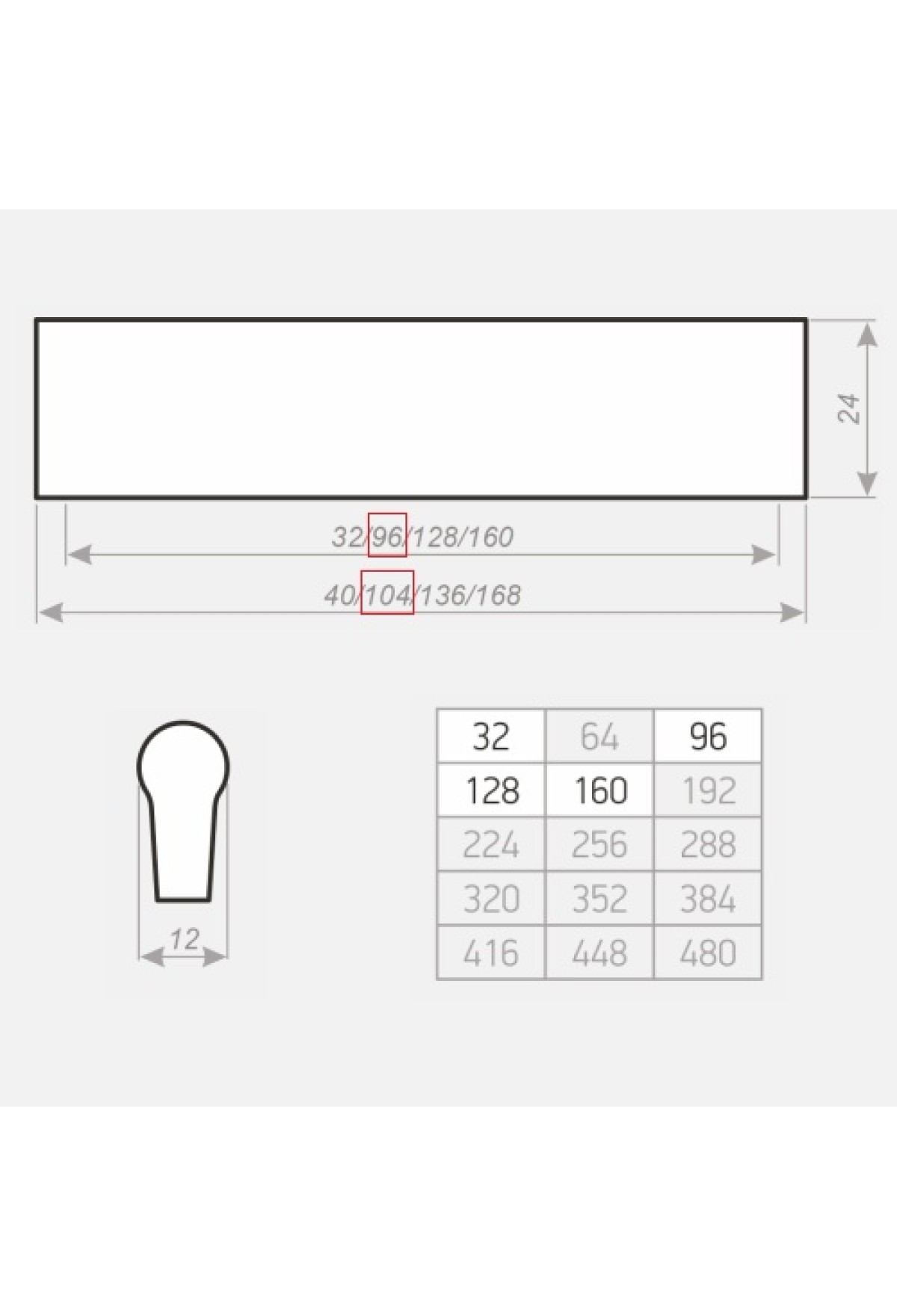Межцентровое расстояние, мм (Ручки, крючки) 96
