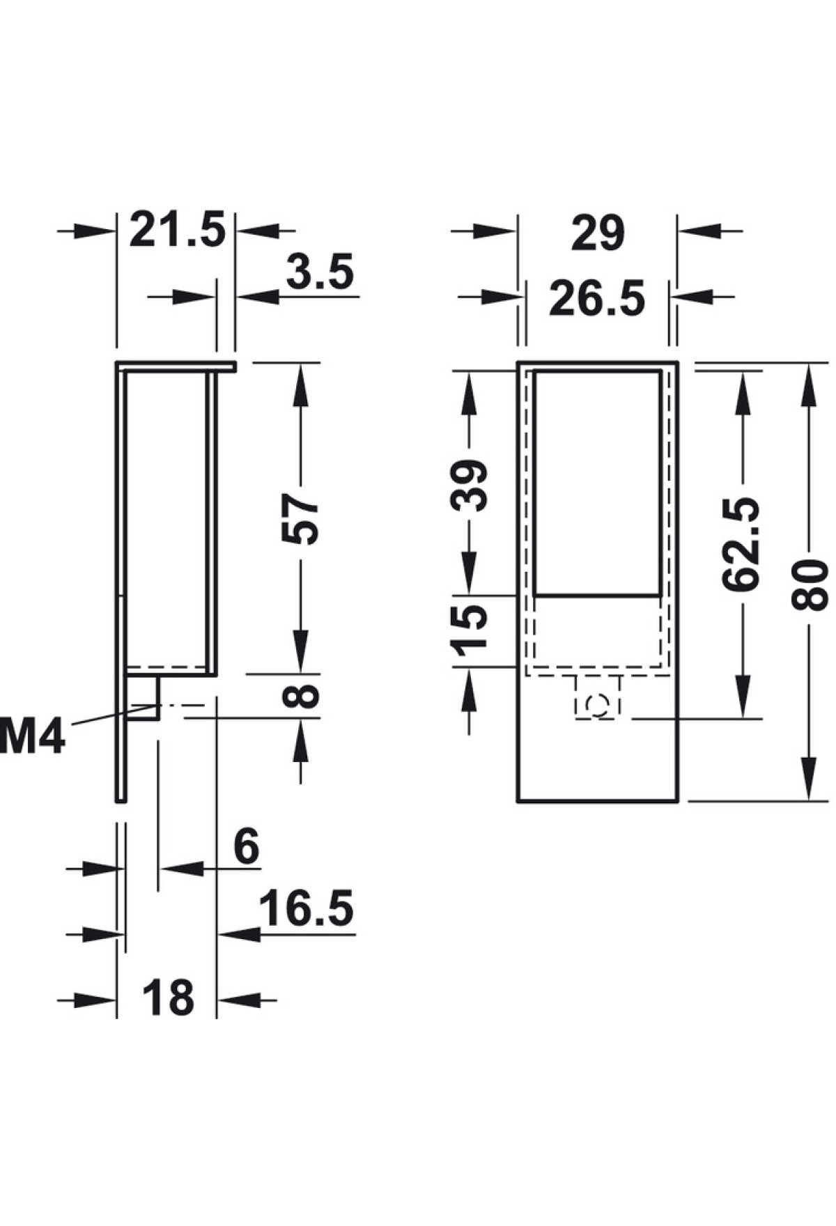 Технические характеристики Ручка мебельная врезная 80*29мм хром 152.13.200 Hafele