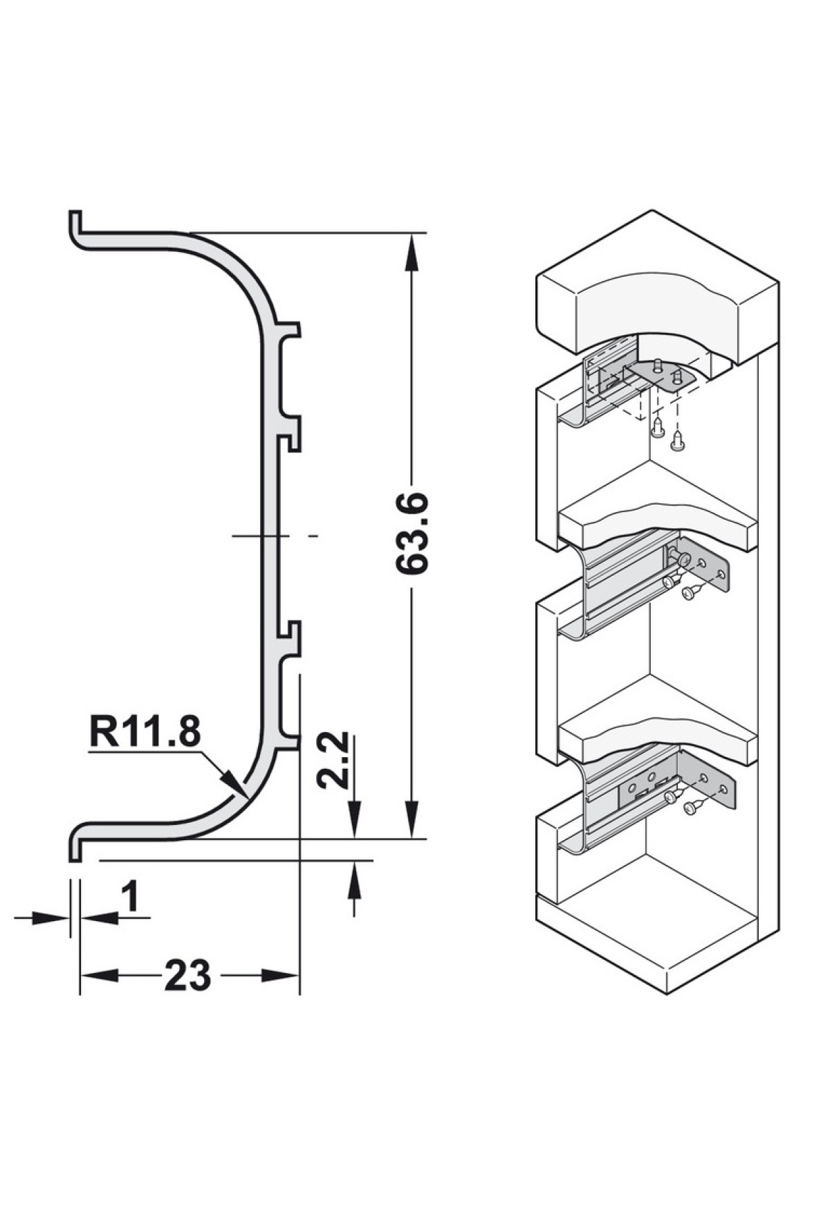 Технические характеристики Ручка-профиль С-образная алюминиевая 2500мм черная 126.36.300 Hafele