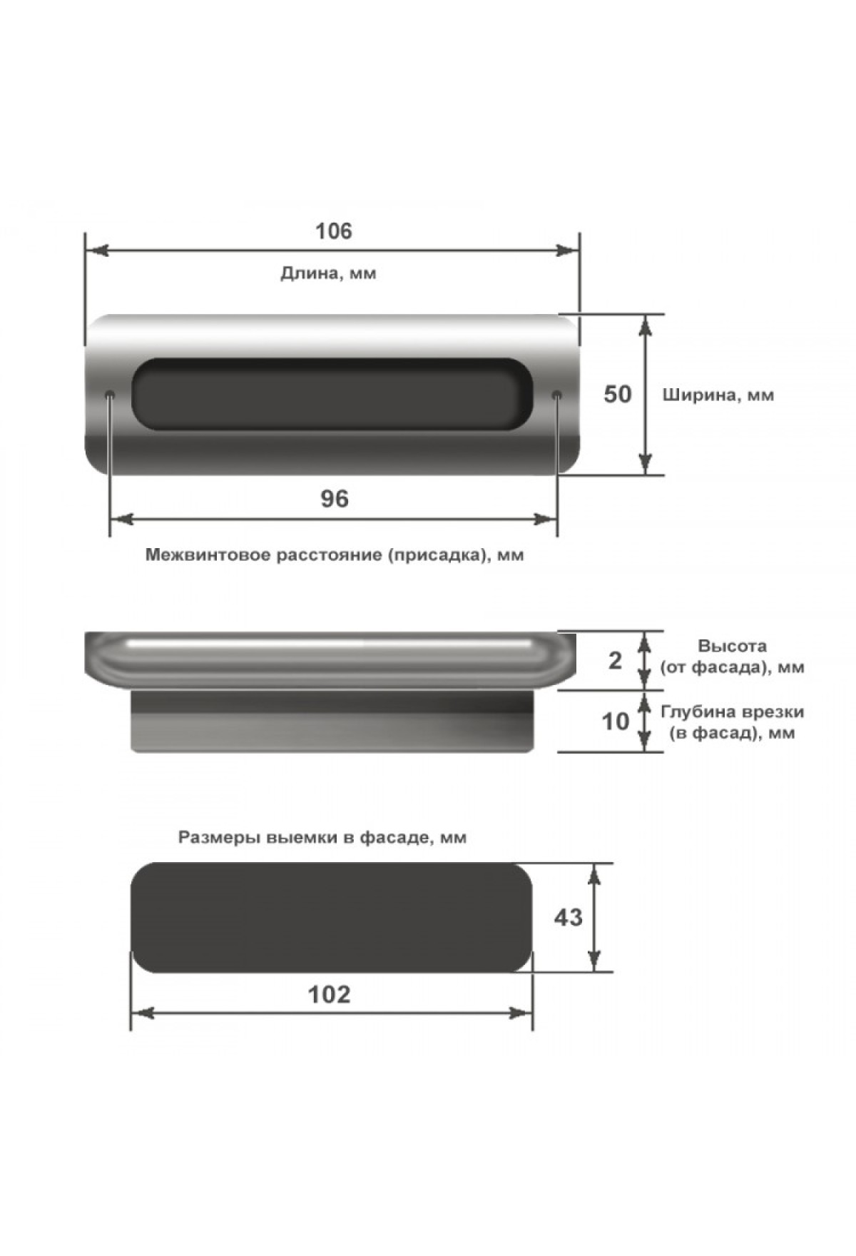 Технические характеристики ручка врезная Fuente, матовый хром,96мм/MD15-96-R8 (RSM08)