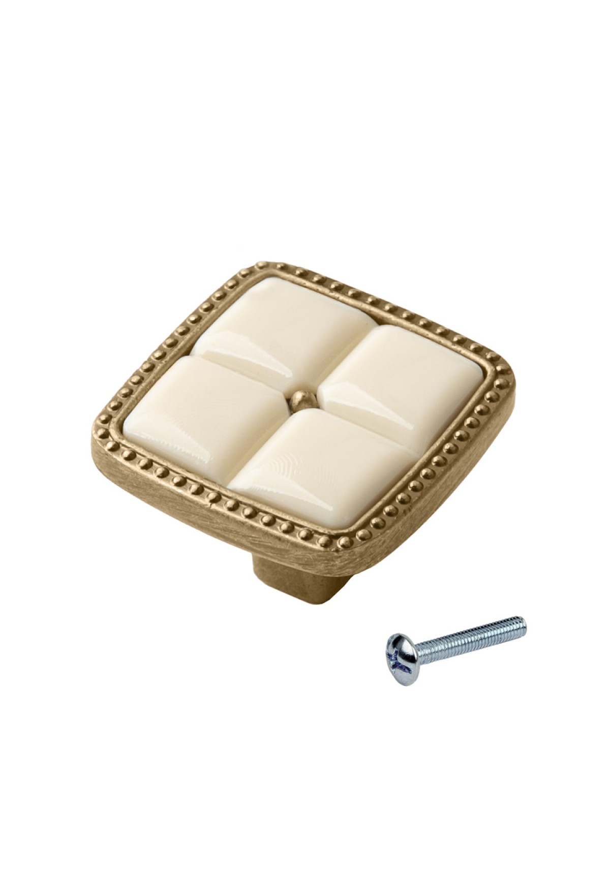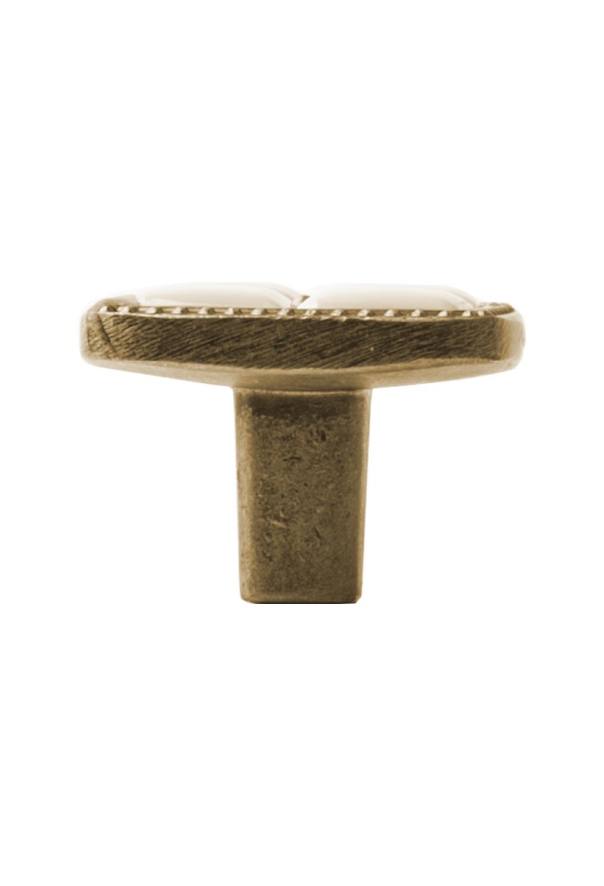 Ручка-кнопка с фарфором, 96 мм, античная бронза/беж