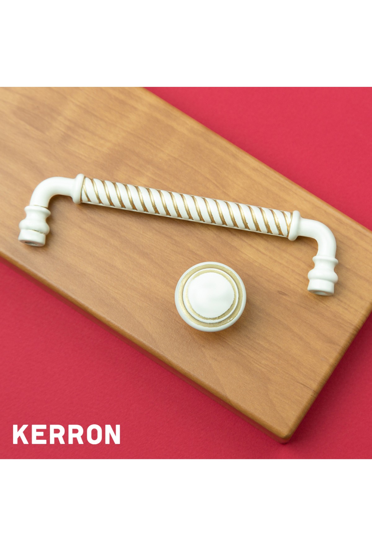 Мебельные ручки KERRON в роскошном сочетании белого цвета с золотой патиной под старину гармонируют с помпезными, торжественными дизайнами кухонь и мебельных гарнитуров. Их утонченность и эклектика также уместна для других интерьерных стилей при умелом использовании.