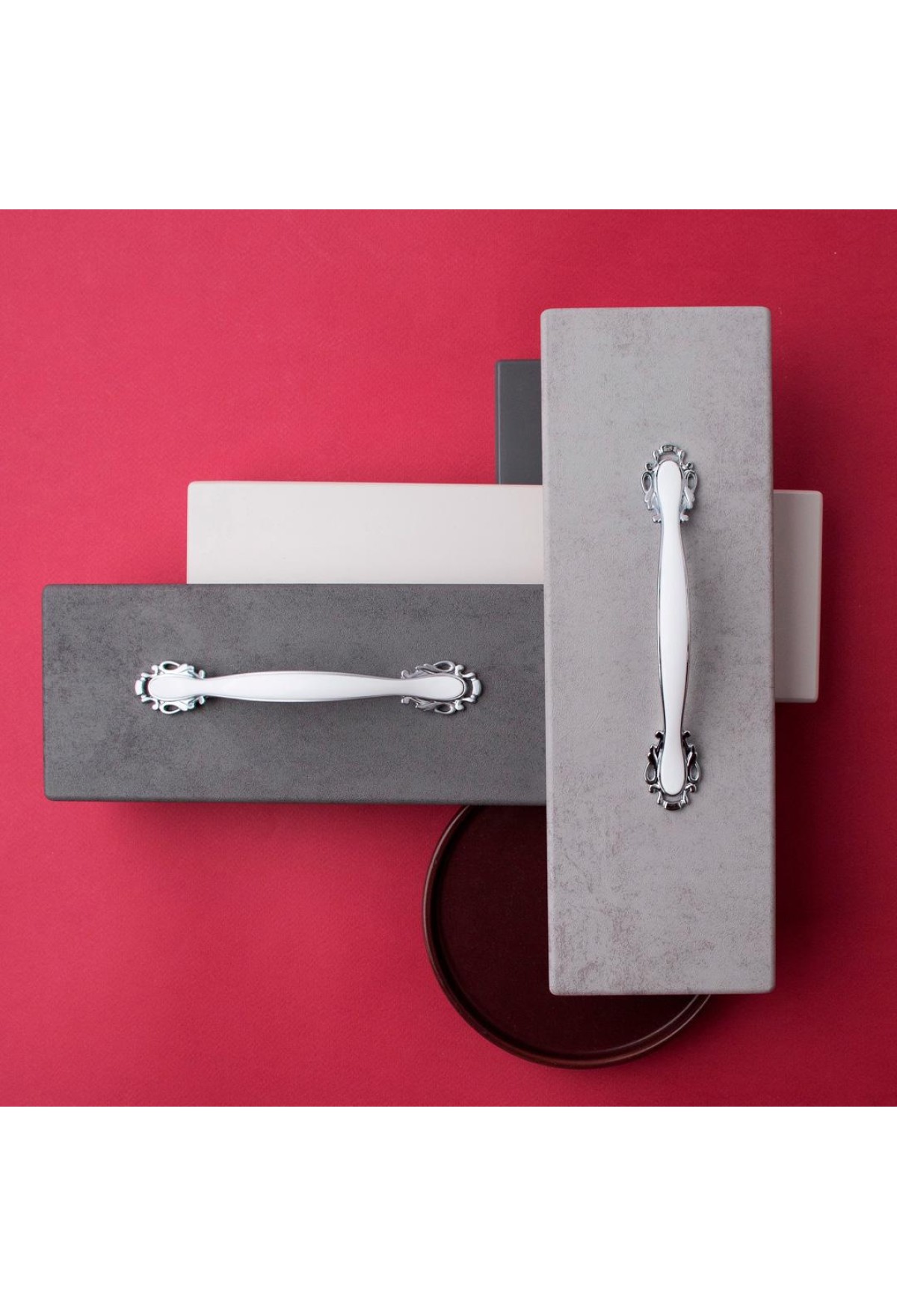 Элегантные ручки в гармоничном сочетании белого и матового хрома, идеально впишутся в классические и неоклассические интерьеры. Благодаря изящной ажурной отделке, фурнитура станет выразительной деталью, подчеркивающей достоинства мебельного гарнитура.