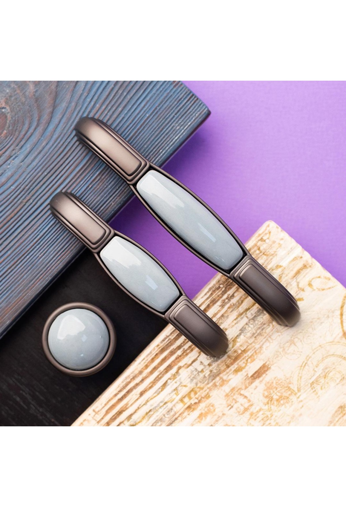 • Ручка-скоба с фарфором, 128 мм, серый