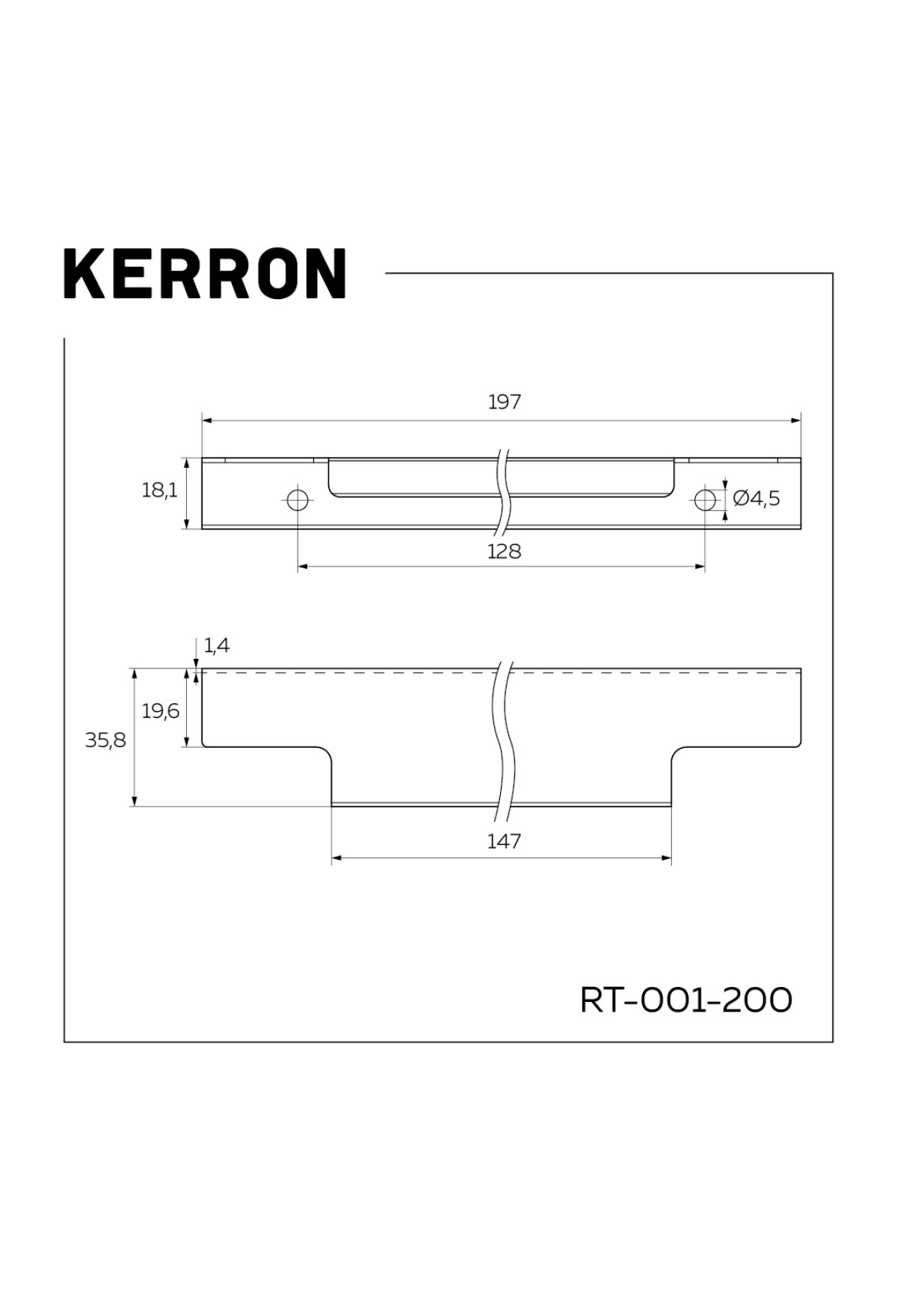 Тэги: Ручка торцевая,  200 мм (фасад 18 мм),  хром RT-001-200, VR3-RT-001-200, KERRON, ✹ Мебельная фурнитура, ✹ Ручки мебельные