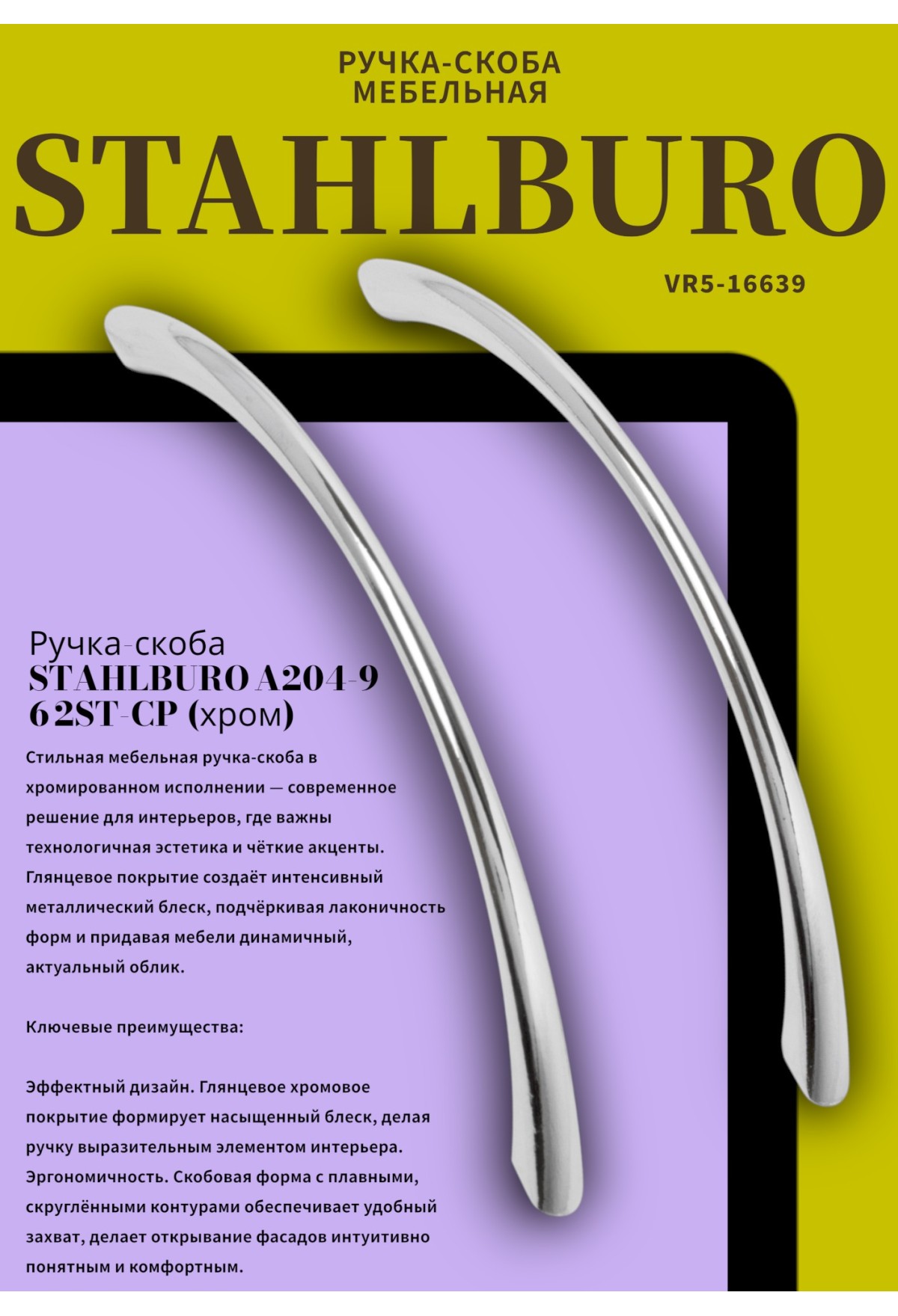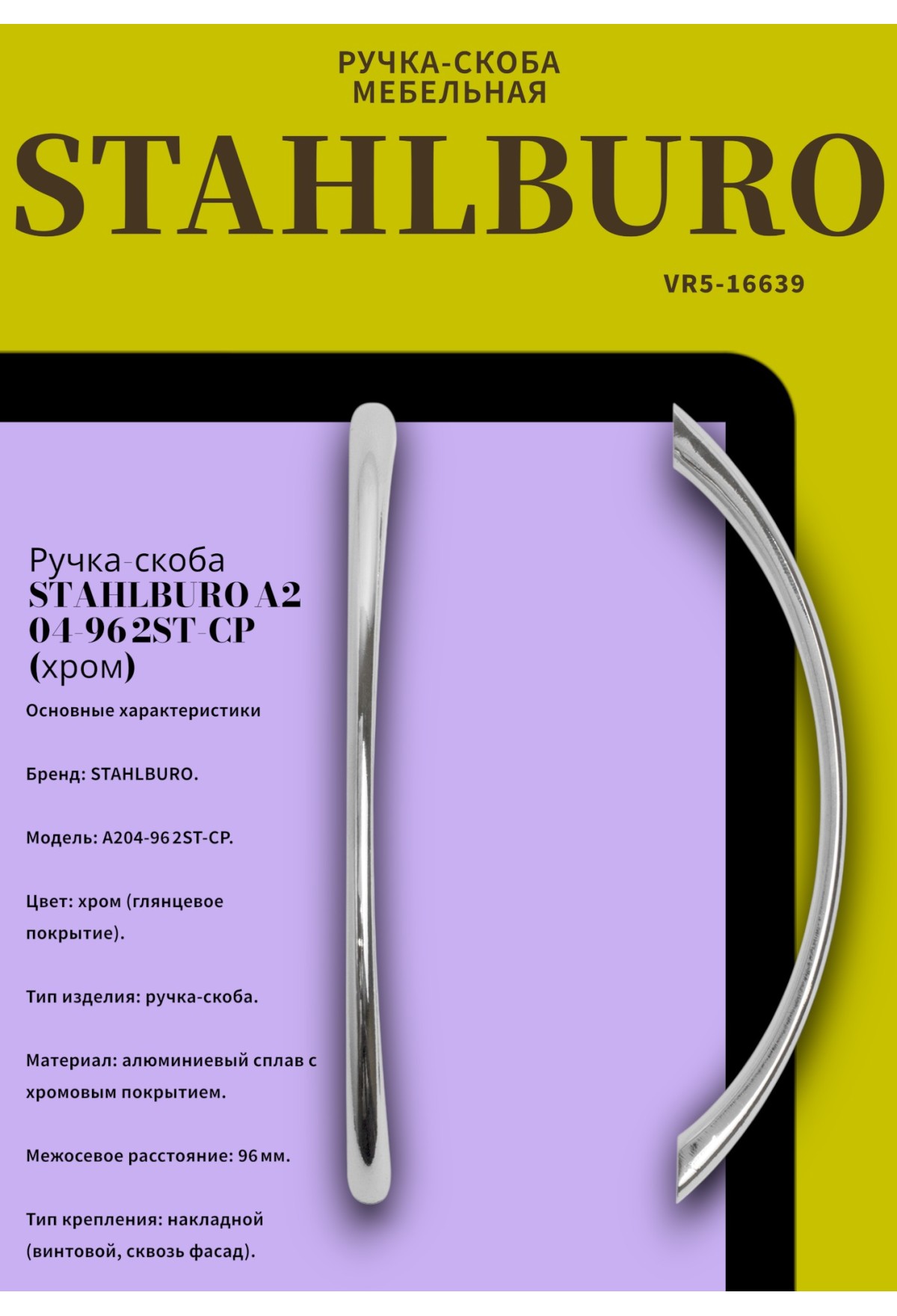 Ручка‑скоба STAHLBURO A204‑96 2ST‑CP (хром)