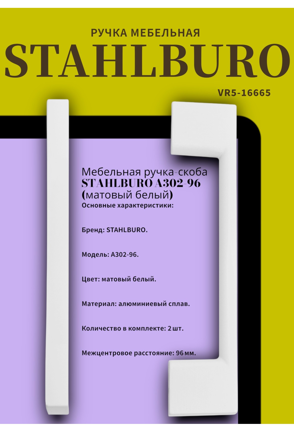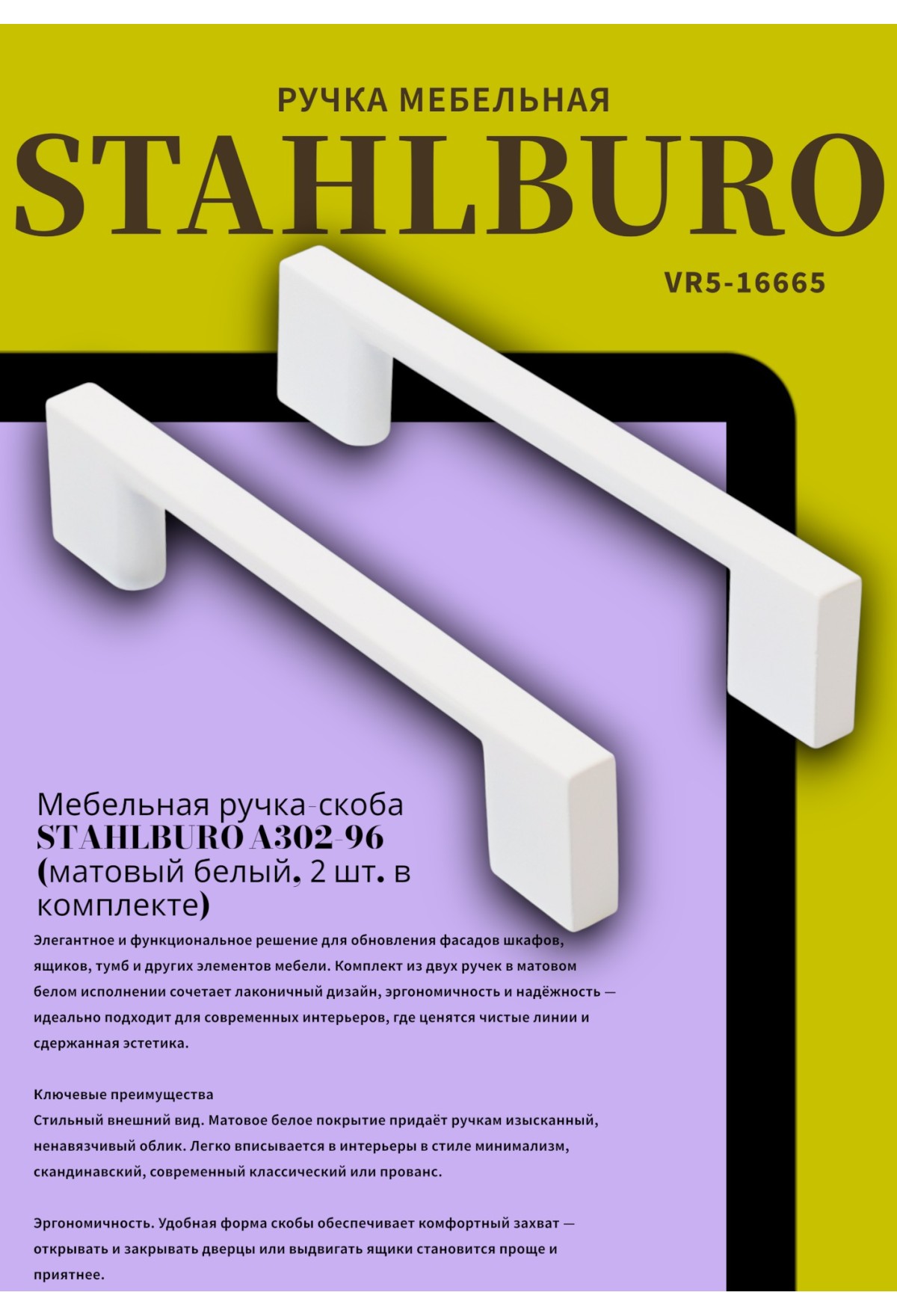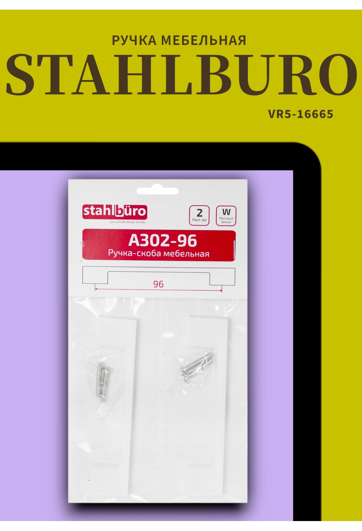 Мебельная ручка‑скоба STAHLBURO A302‑96 (матовый белый, 2 шт. в комплекте)