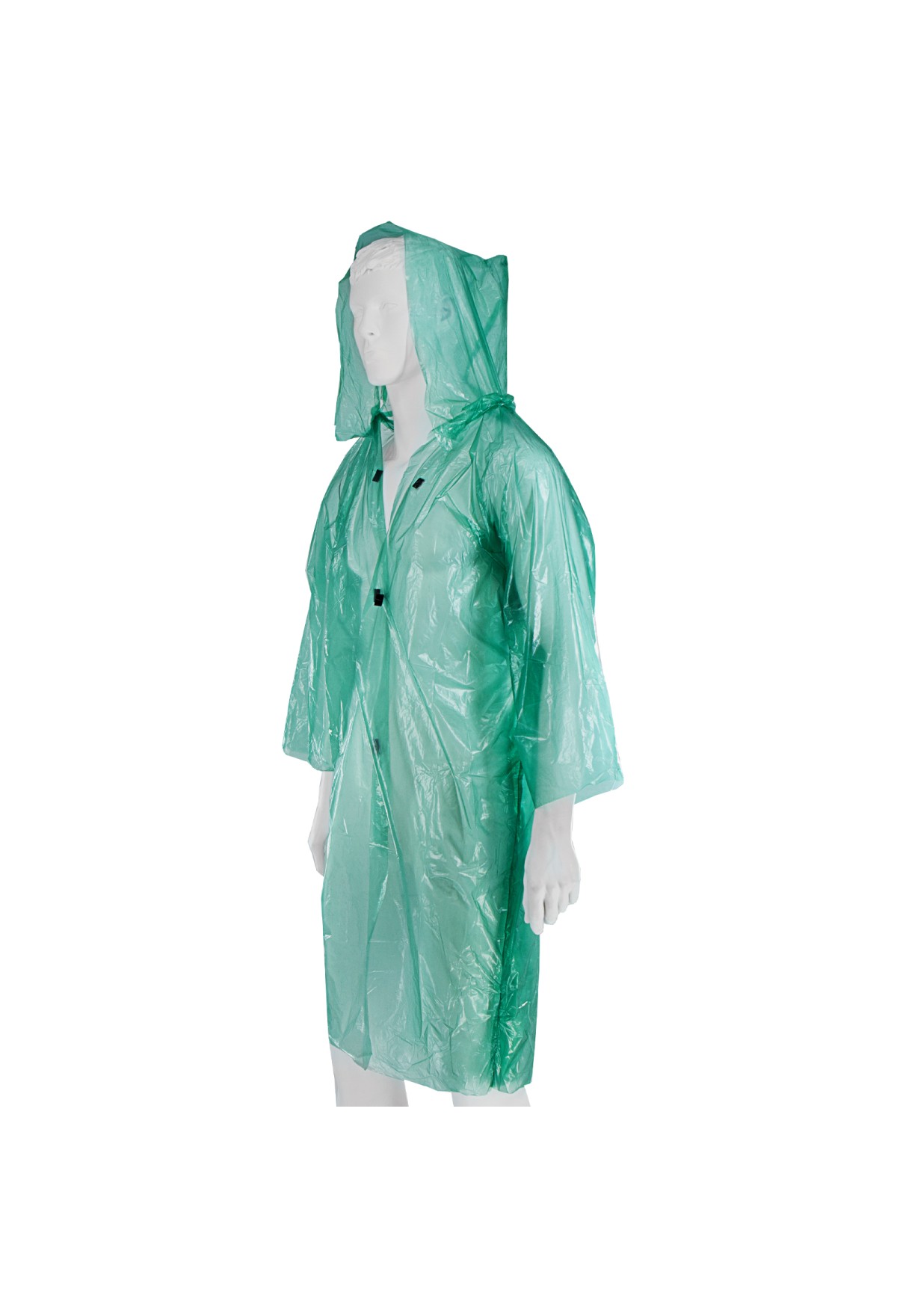 - Долговечность — плащ изготовлен из полиэтилена высокого давления толщиной 35-40 мкм, устойчивого к механическим повреждениям, поэтому подходит для многократного применения.