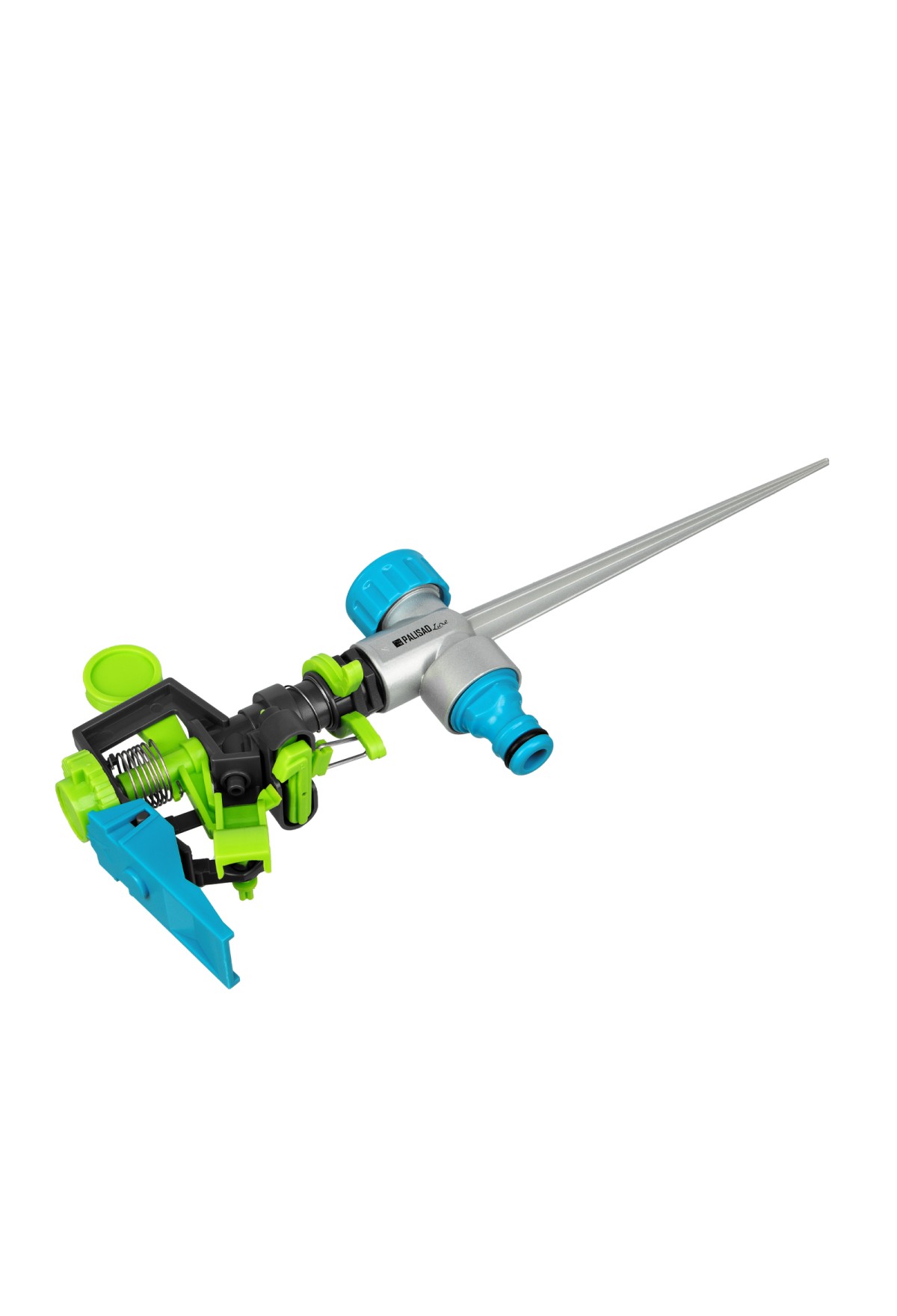 Импульсный усиленный разбрызгиватель Palisad Luxe 65796 с регулировкой угла горизонтального распыления до 33 м позволяет организовать стационарный полив на участке площадью до 390 кв. м. Меняя угол струи и дальность разбрызгивания, можно задавать конкретный сектор орошения. Устройство пригодится для ухода за зелеными насаждениями на приусадебном участке и прочих озелененных территориях.