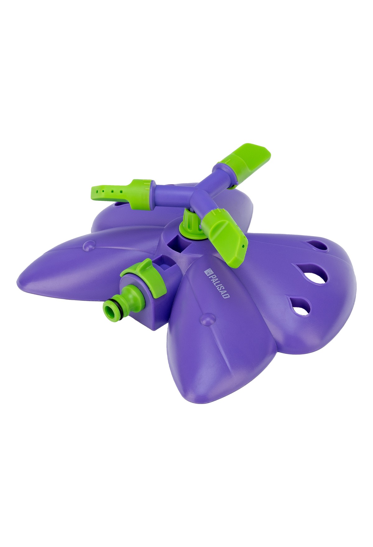 Вращающийся разбрызгиватель Palisad «Бабочка» 65401 с 3 лопастями, с регулировкой, используется для орошения газонов и садовых участков. Максимальная площадь полива составляет 58 кв.м. Дальность распыления можно варьировать от 2 до 4,3 м. На каждой лопасти 4 отверстия, обеспечивающие равномерный полив. Основание выполнено в форме бабочки, что придает устройству оригинальный вид.