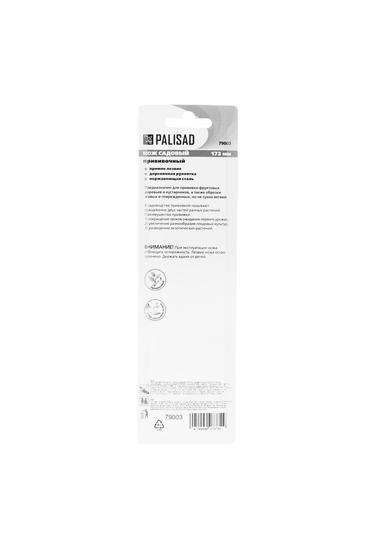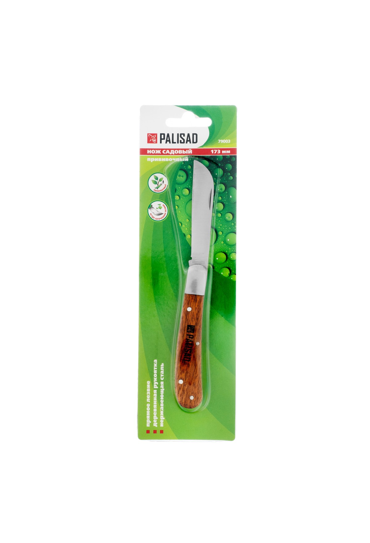 Садовый складной нож Palisad 79003 длиной 173 мм, с прямым лезвием и деревянной рукояткой будет полезен садоводам для удаления сучьев, нарезки черенков, срезки шипов, зачистки срезов и т.д. За счет складной конструкции его можно удобно и безопасно транспортировать и хранить. Во избежание преждевременного затупления лезвия рекомендуется протирать его салфеткой и смазывать маслом после каждого применения.